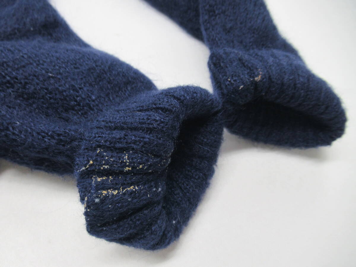 程度:全体的にシワ、ヨレ、擦れ、毛羽立ち、毛玉など感じられ、そでぐり内側に汚れの付着が見られます。