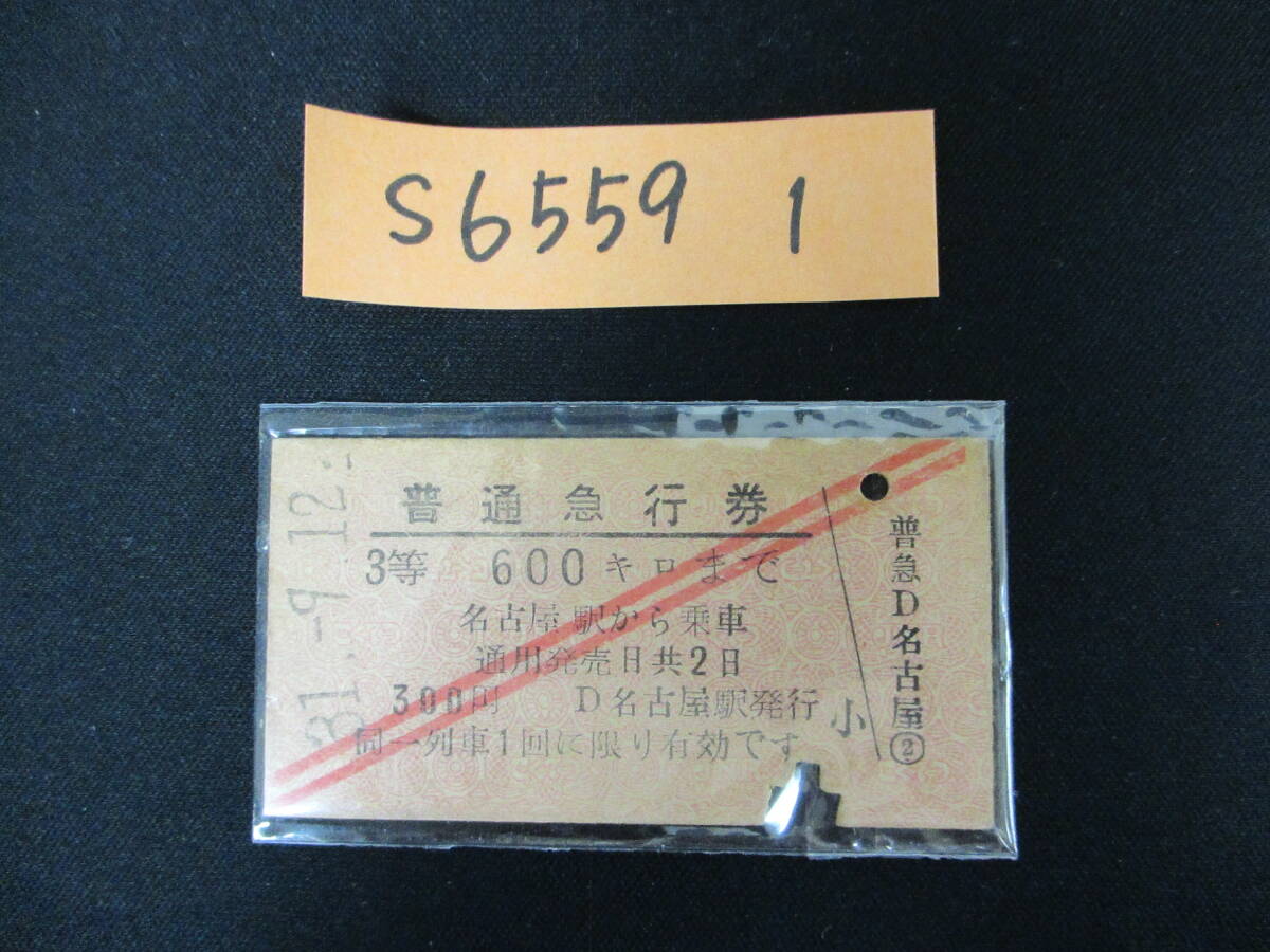 F7 【鉄道硬券】普通急行券 3等600キロまで 名古屋駅から乗車 昭和31.9.12 約1枚セット 【鉄道切符】 S6559