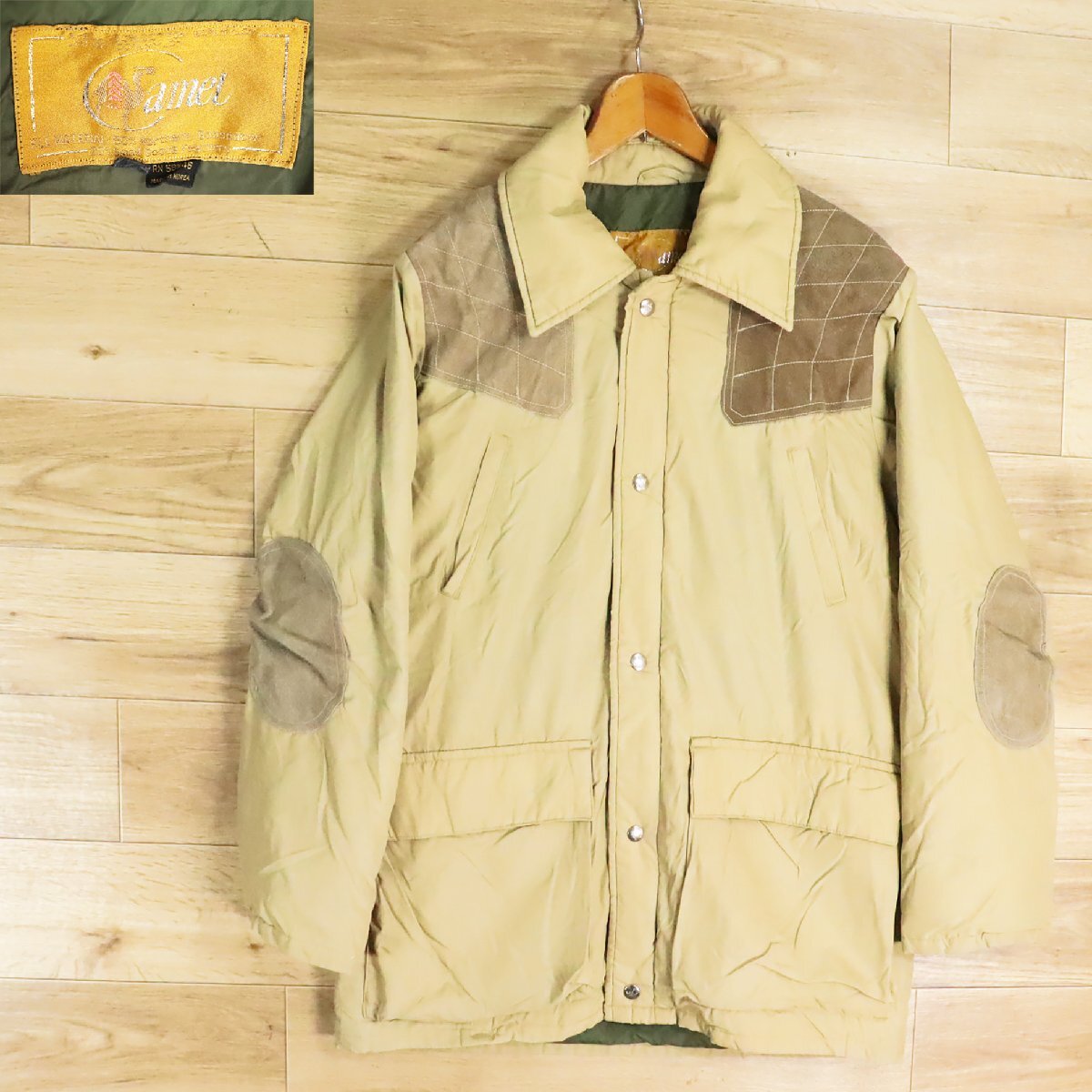 Y7S/D7.29-4 Camel ハンティングジャケット ダウンジャケット ガンパッチ エルボーパッチ アウトドア メンズ M ベージュ系