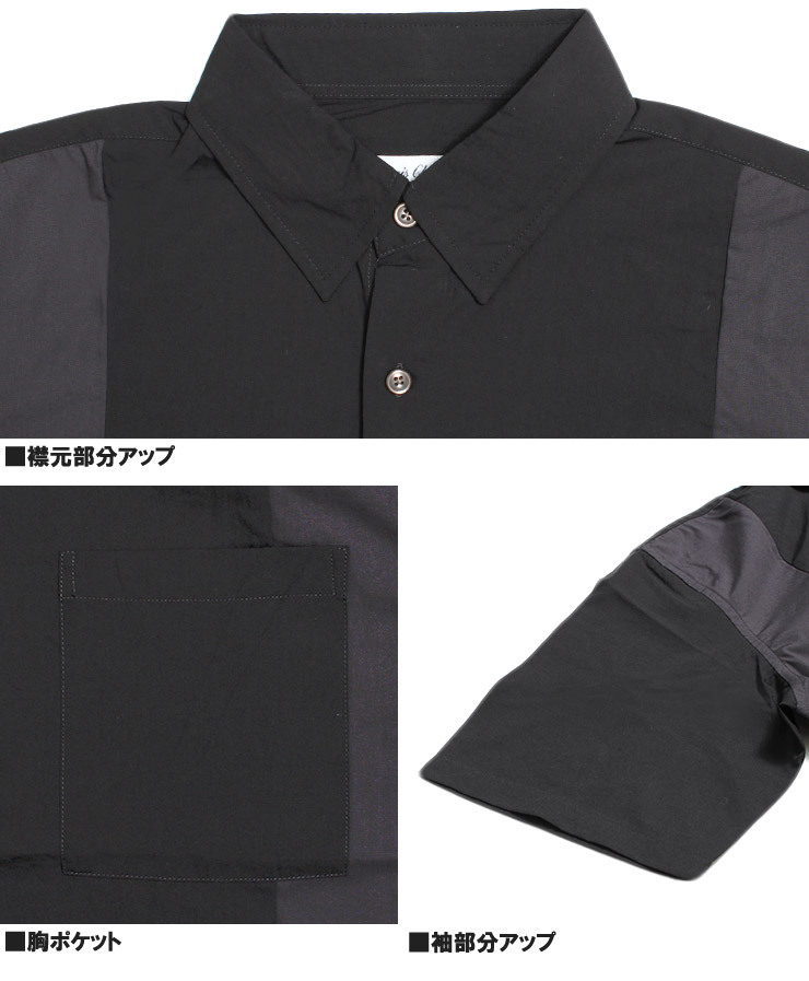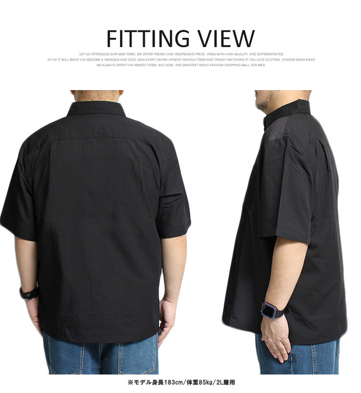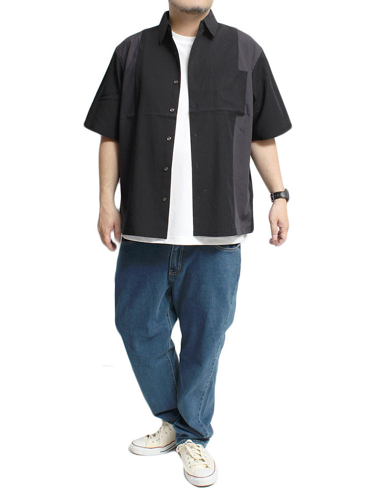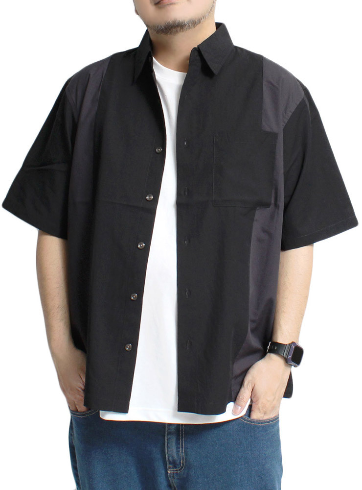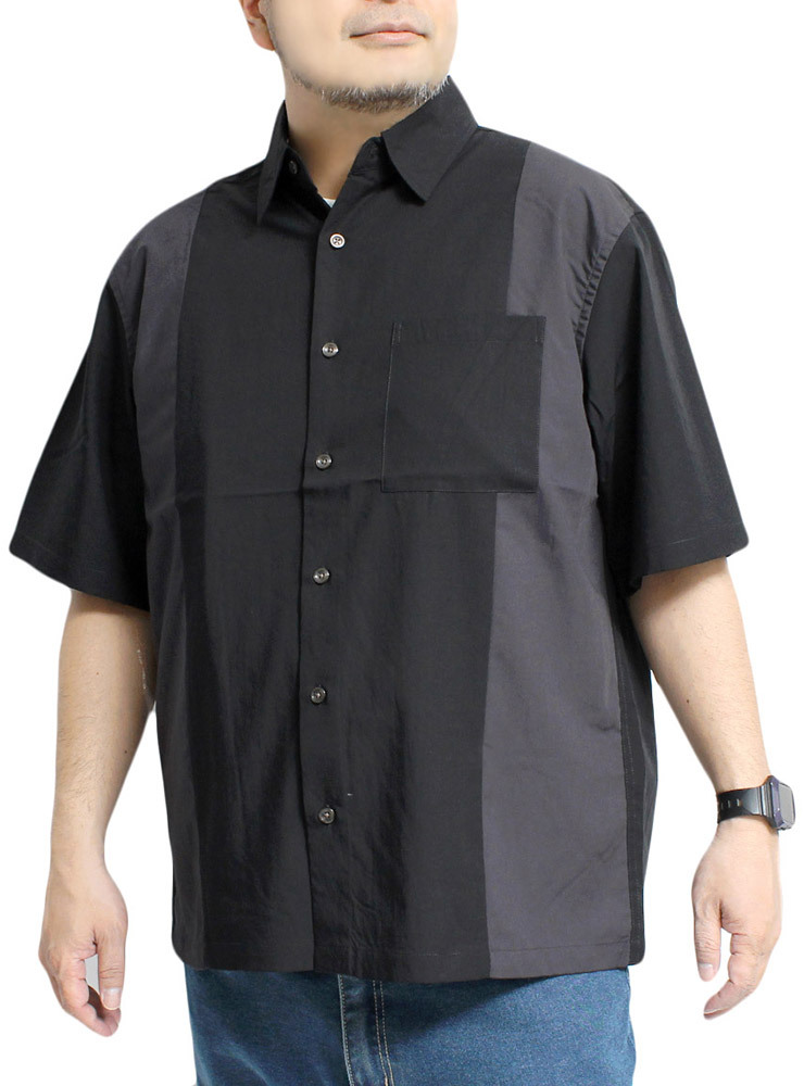 | 商品名 | 【新品】 4L ブラック 半袖シャツ メンズ 大きいサイズ デザイン 切替 つぶし衿 ポリエステル レーヨン カジュアルシャツ |