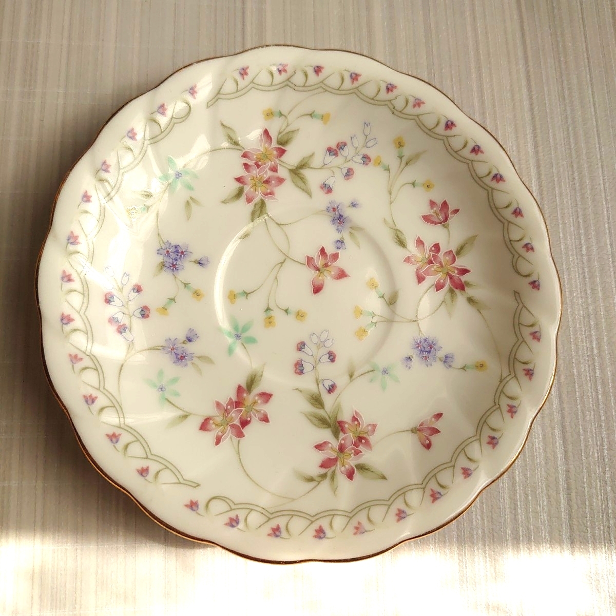 長期保管のHOYA、花柄ソーサーです。直径14.5CMでUSEDの為細かなキズや金彩のハゲなどがあります。数年前まで使用していましたがカップ破損でプレートのみ、おやつタイムに使用しましたが、以降はしまったままでした。ソーサーのみでUSEDですが気にしないよという方、よろしくお願いします。