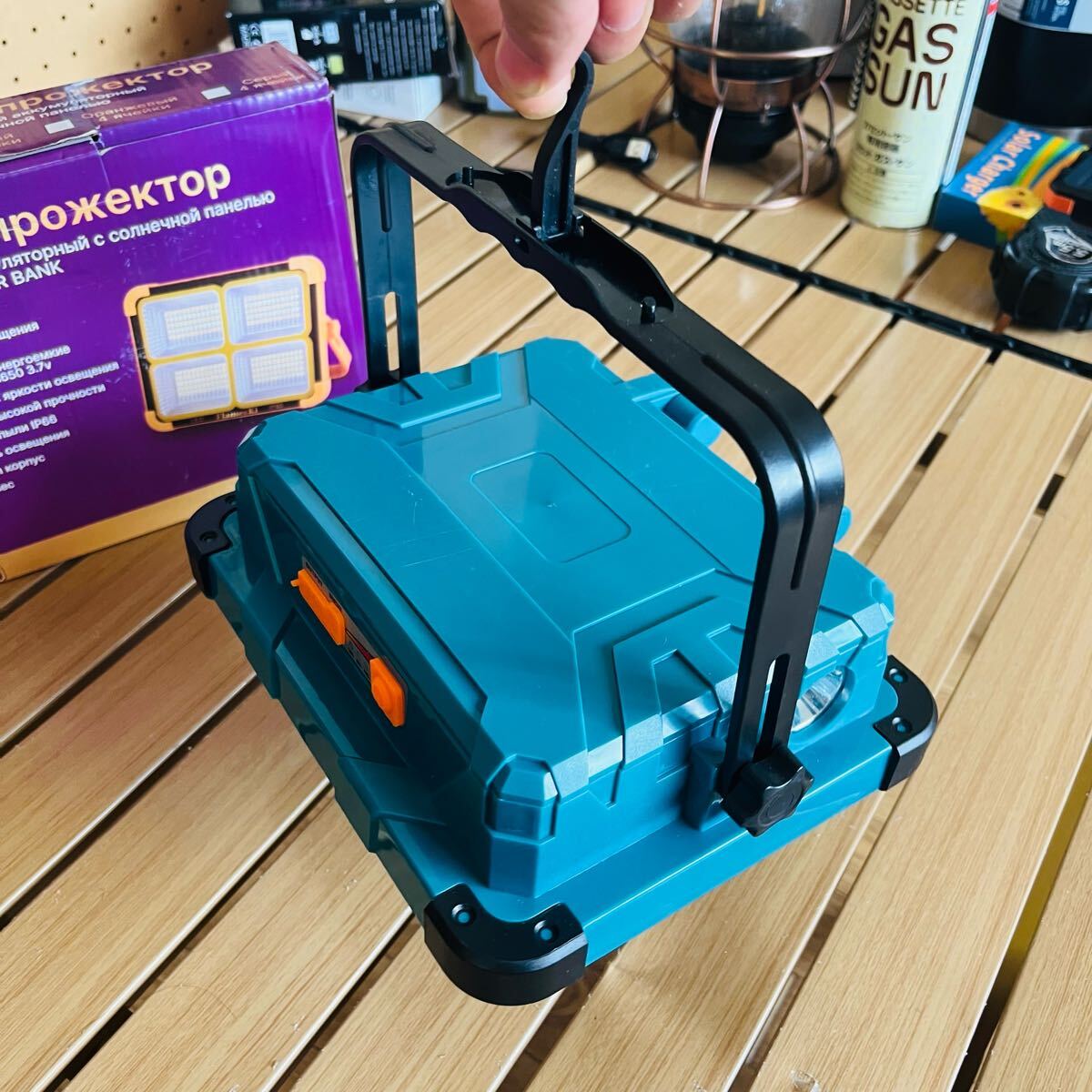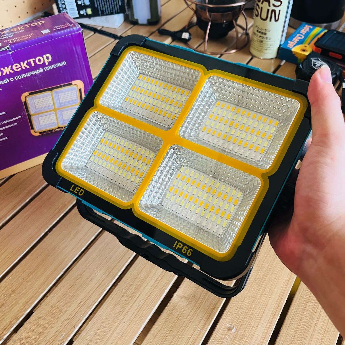 超大型2枚ソーラー充電 アウトドア照明 超高輝度 キャンプランタン LEDランプ ライト 作業 移動電源500w 9000mAh 登山 22×17cm×6cm