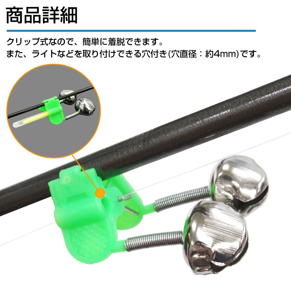 ケミカルライトとの同時使用が◎ クリップ式 釣り用 鈴 フィッシュベル 10個 フィッシング グリーン 竿