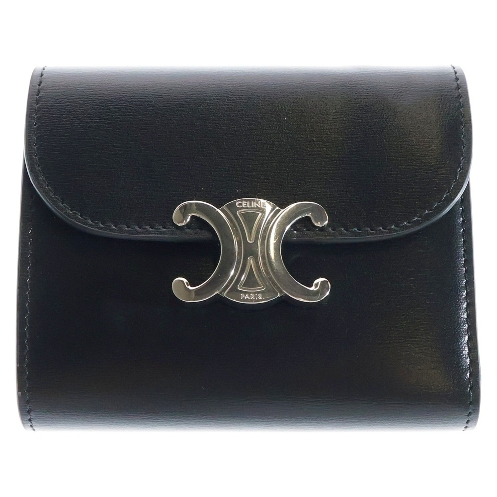 セリーヌ トリオンフ スモール フラップウォレット 三つ折り財布 コンパクトウォレット ブラック シルバー金具 10D783DPV.38SI