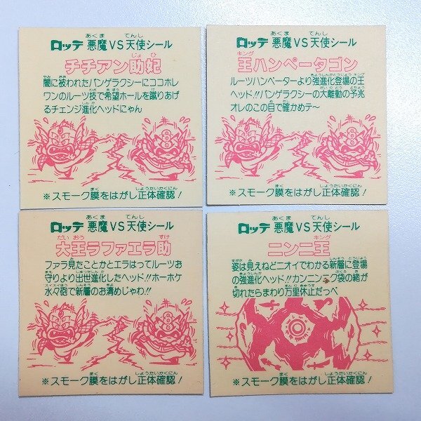 ロッテ 旧ビックリマン チョコ版 26弾 ヘッド スモーク膜なし 文末あり まとめ 計4枚 種類につきましては、画像をご参照ください。 ※11枚目以降の画像はこちらでご覧になれます。 |