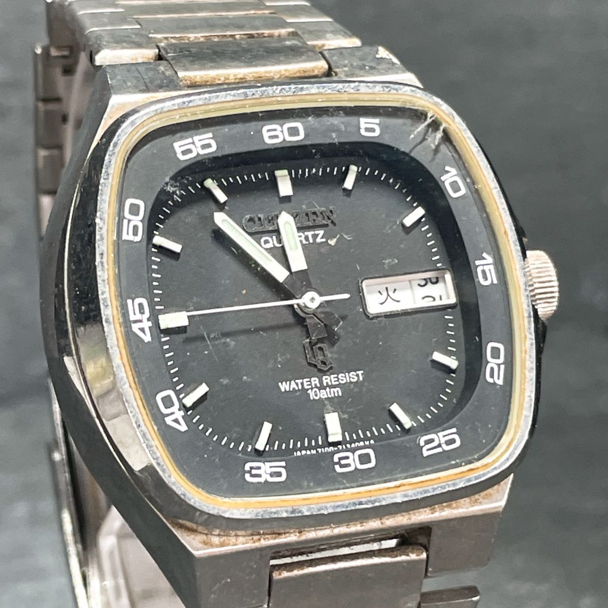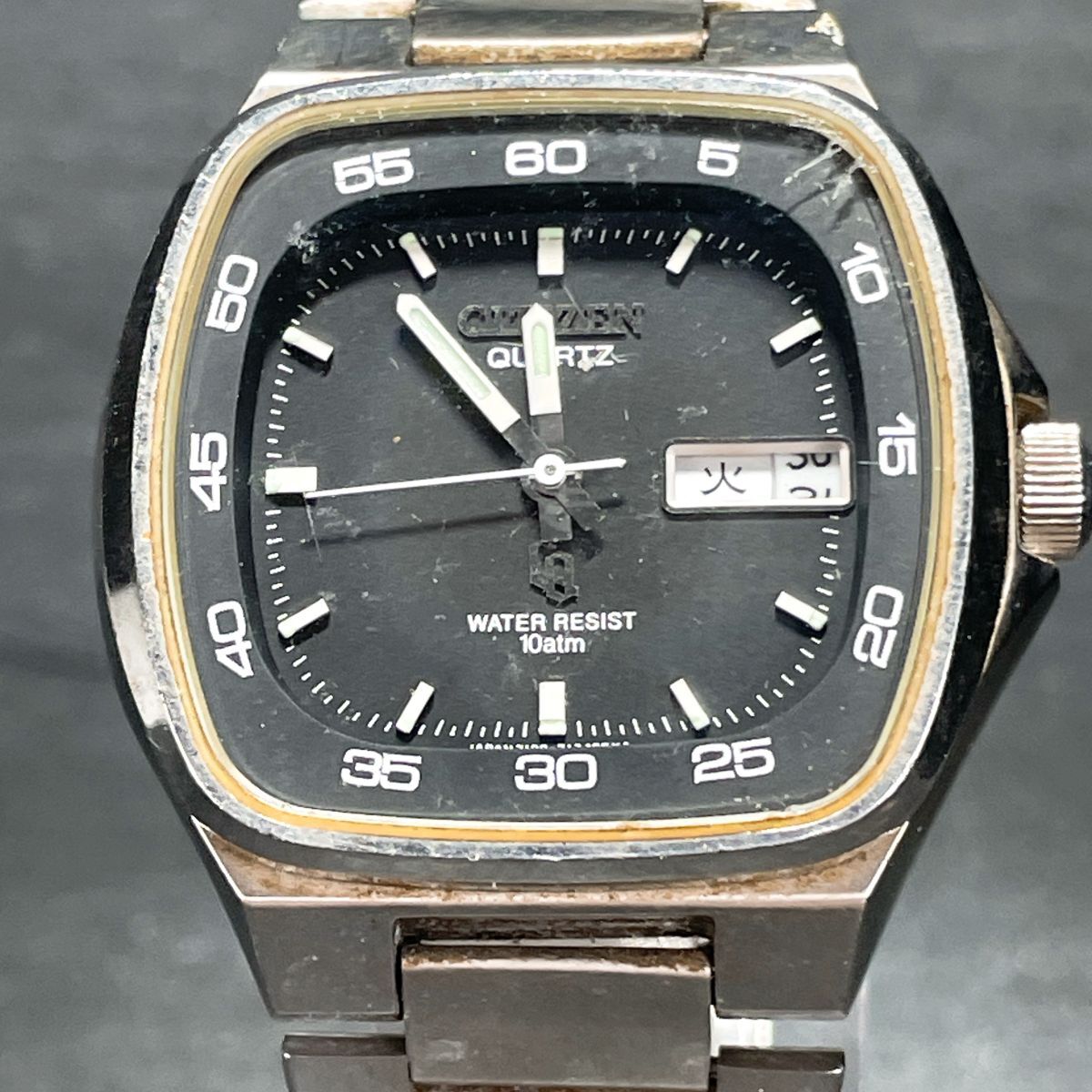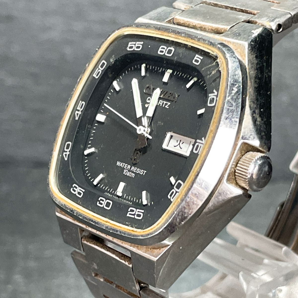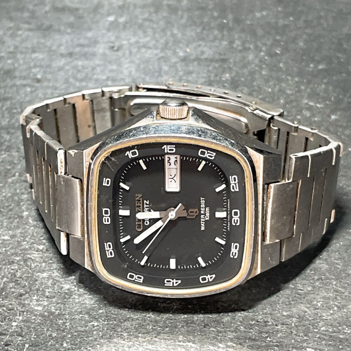 CITIZEN シチズン 4-730127 腕時計 アナログ クオーツ 3針 カレンダー ブラック文字盤 メタルバンド 新品電池交換済み 動作確認済み