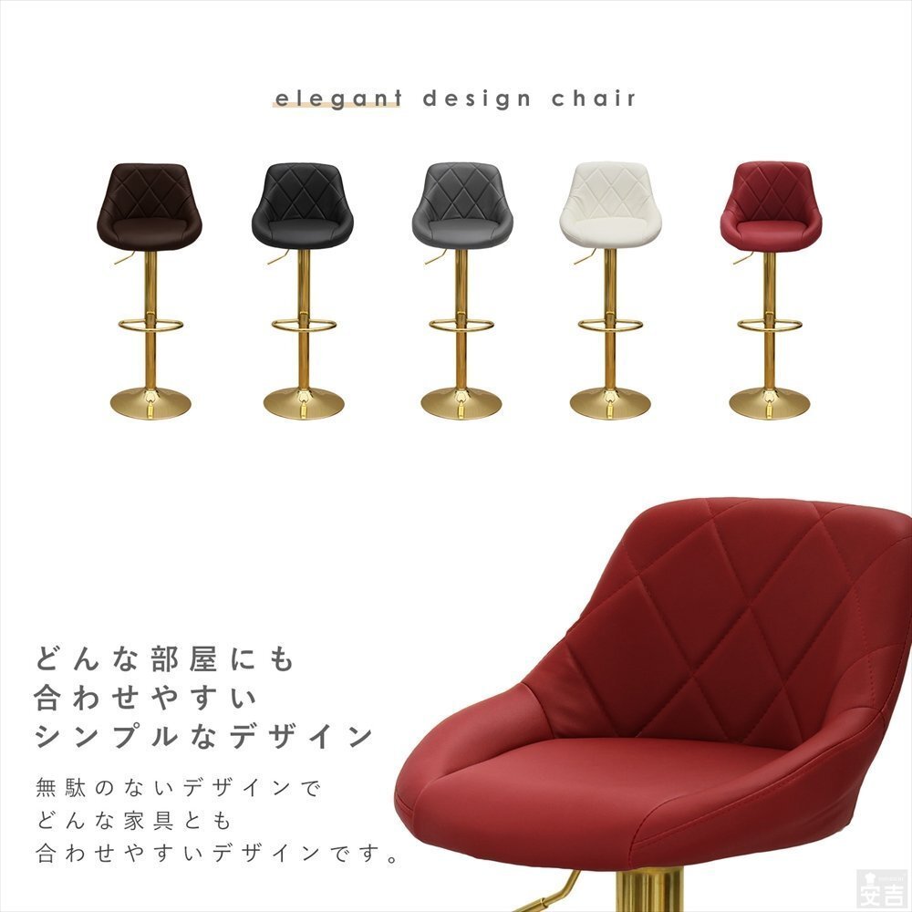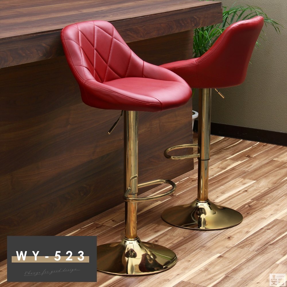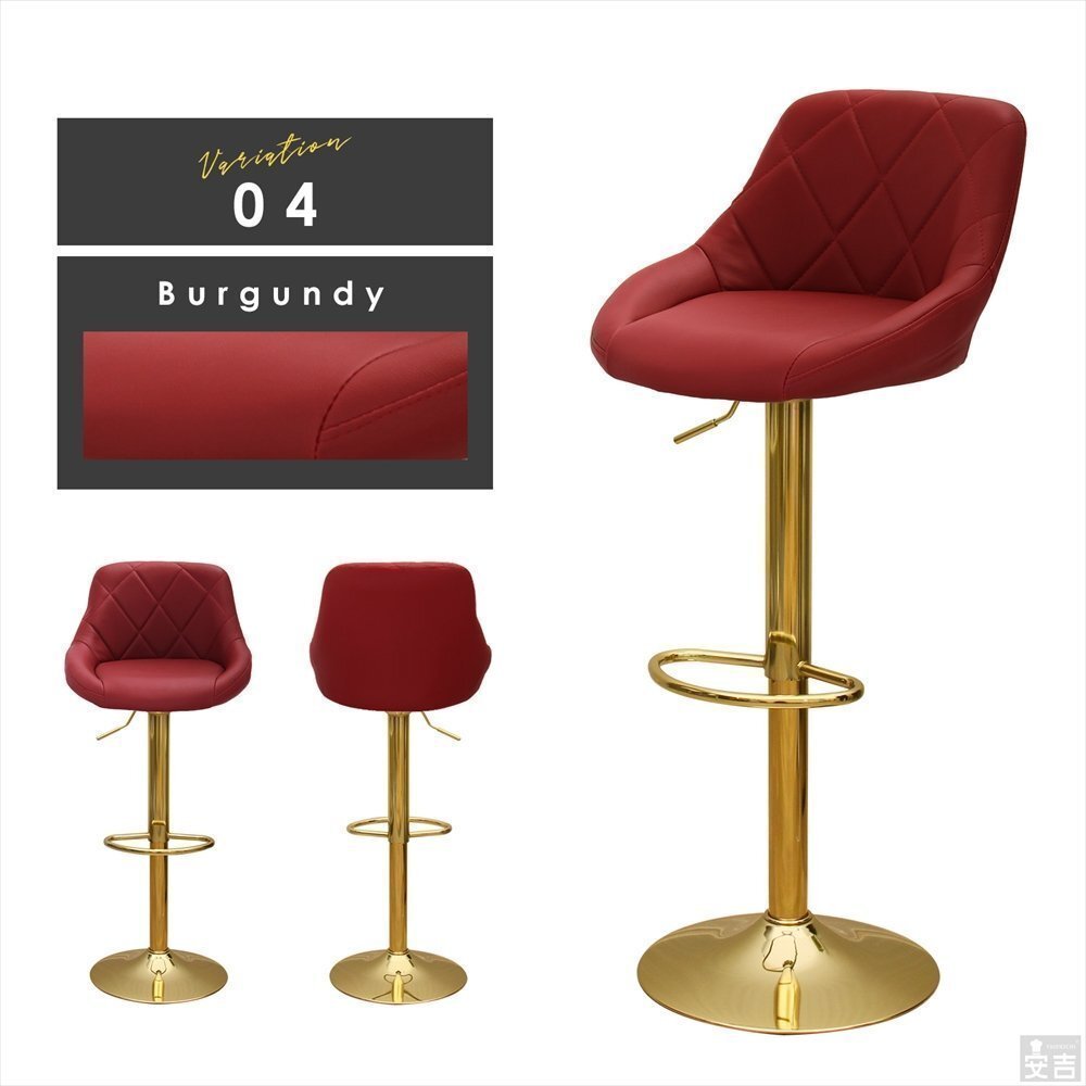 昇降式カウンターチェアー WY-523 ゴールド脚 バーガンディ |