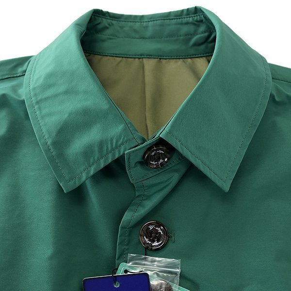 新品 未使用 紙タグあり 50サイズ(XLサイズ相当・画像は別サイズで撮影) ※商品に記載されたサイズ・寸法です※ 肩幅48cm 身幅60cm 袖丈63cm 着丈90.5cm 表地:ポリエステル100% 裏地:ポリエステル100% グリーン系 |