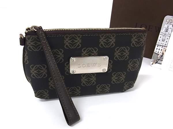 ■美品■ LOEWE ロエベ リピートアナグラム PVC×レザー ポーチ マルチケース 小物入れ ブラウン系 FH8126