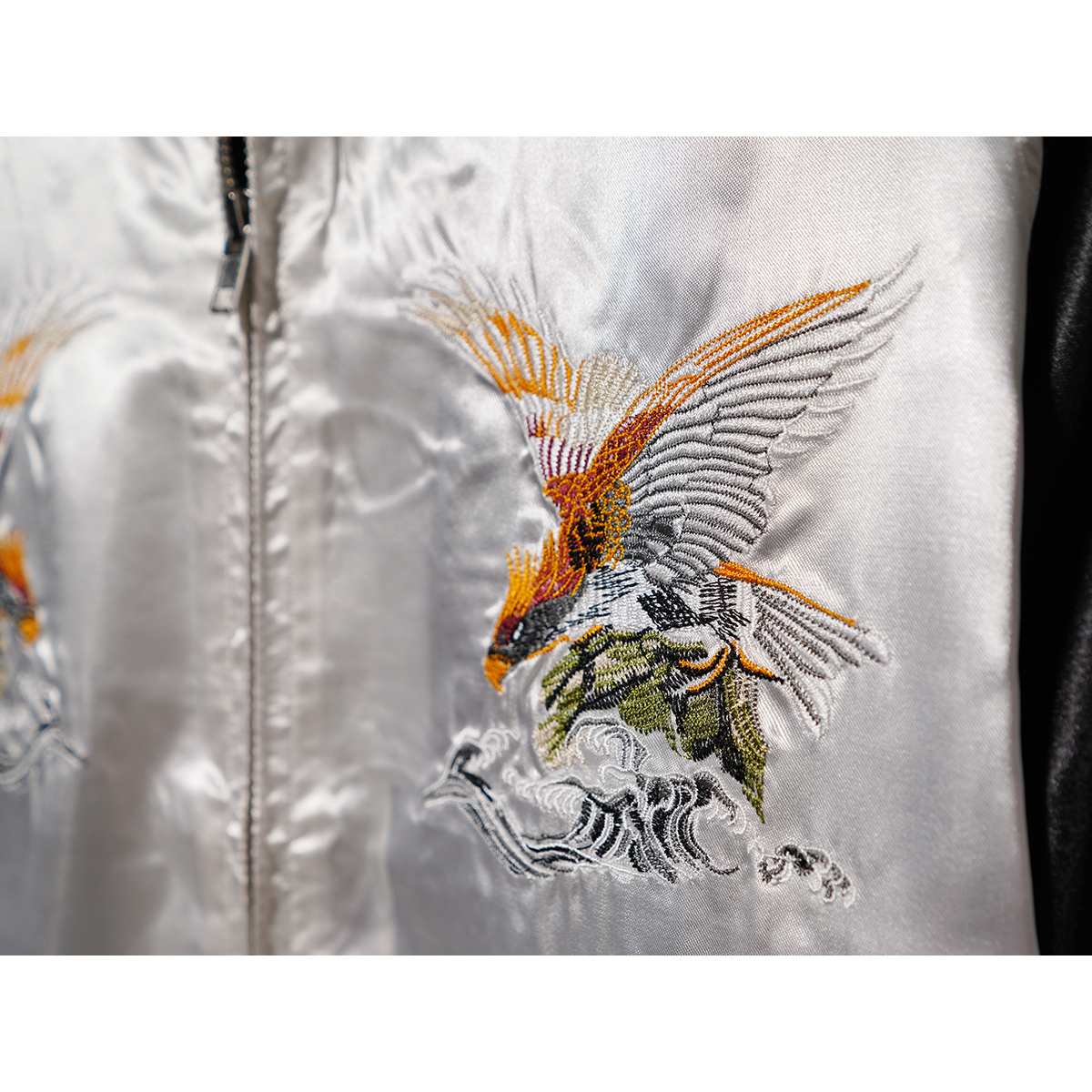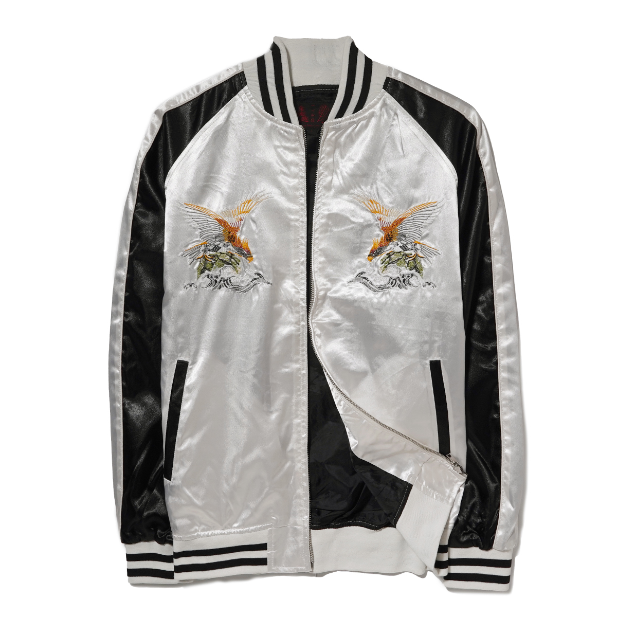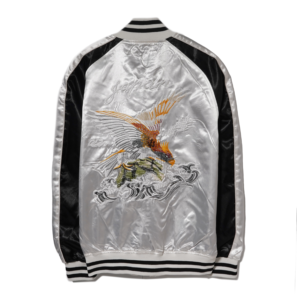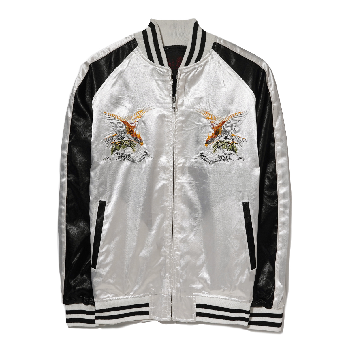 | さらりと羽織れるストリート定番スカジャン。 程よい厚さとサラッとした高級感のあるサテン生地、 フロントとバックに施された丁寧な刺繍使いがポイントで、アメカジでは定番のスカジャンを現代っぽくタイトなサイズ感に。 ボディはカラー配色切り替えで仕上げた大人っぽさのあるデザインなど凝ったディティール。 これからの時期に最適、ライトアウターとして活躍してくれる1着。 左胸内側裏ポケットあり、中綿ナシ。 【カラー◆Color】 イーグル / SILVER 【サイズ◆Size】 XL (LL) 【寸法◆Size】 S size : 身幅51cm 肩幅(ラグランにより数値なし) 着丈59cm 裄丈80cm M size : 身幅53cm 肩幅(ラグランにより数値なし) 着丈61cm 裄丈82cm L size : 身幅55cm 肩幅(ラグランにより数値なし) 着丈63cm 裄丈84cm XL size : 身幅57cm 肩幅(ラグランにより数値なし) 着丈65cm 裄丈86cm 【素材◆Material】 ポリエステル 100% ※現物に近いカラーに撮影しておりますがモニターカラー設定、または印象によりカラー誤差があることをご理解よろしくお願い致します。 | ||