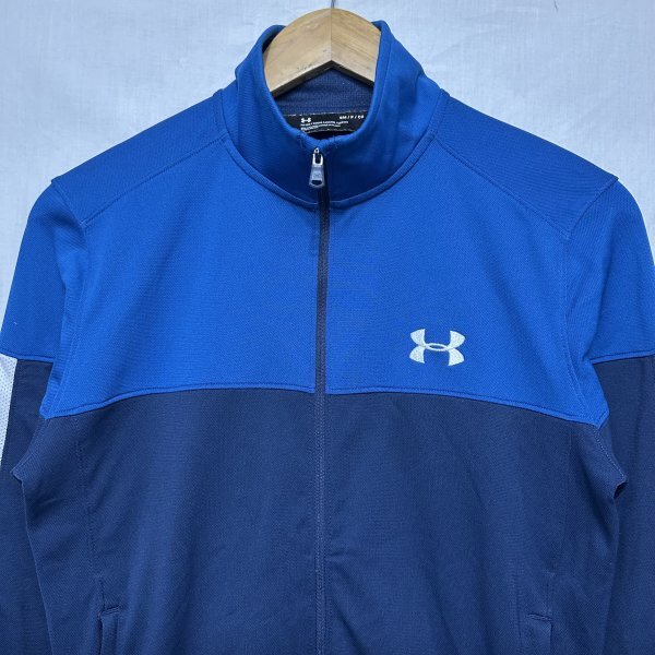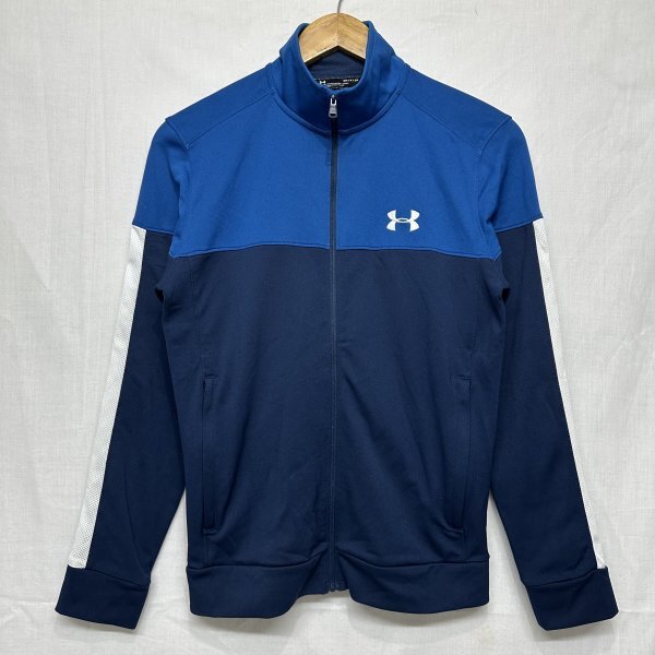〇UNDER ARMOUR アンダーアーマー ロング スリーブ 長袖 フル ジップ ジャケット ジャージ スポーツ トレーニング S 紺 ネイビー