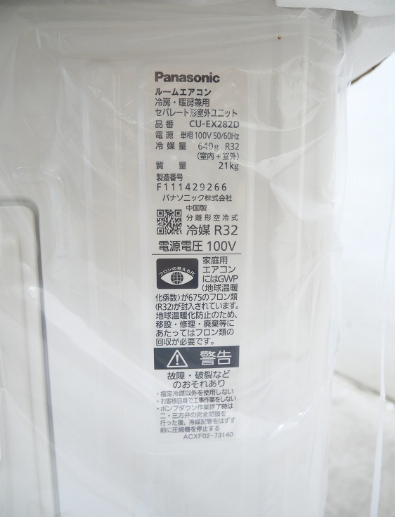【未使用品】【室外機のみ】Panasonic製/ルームエアコン/10畳用/CU-EX282D(7092972)