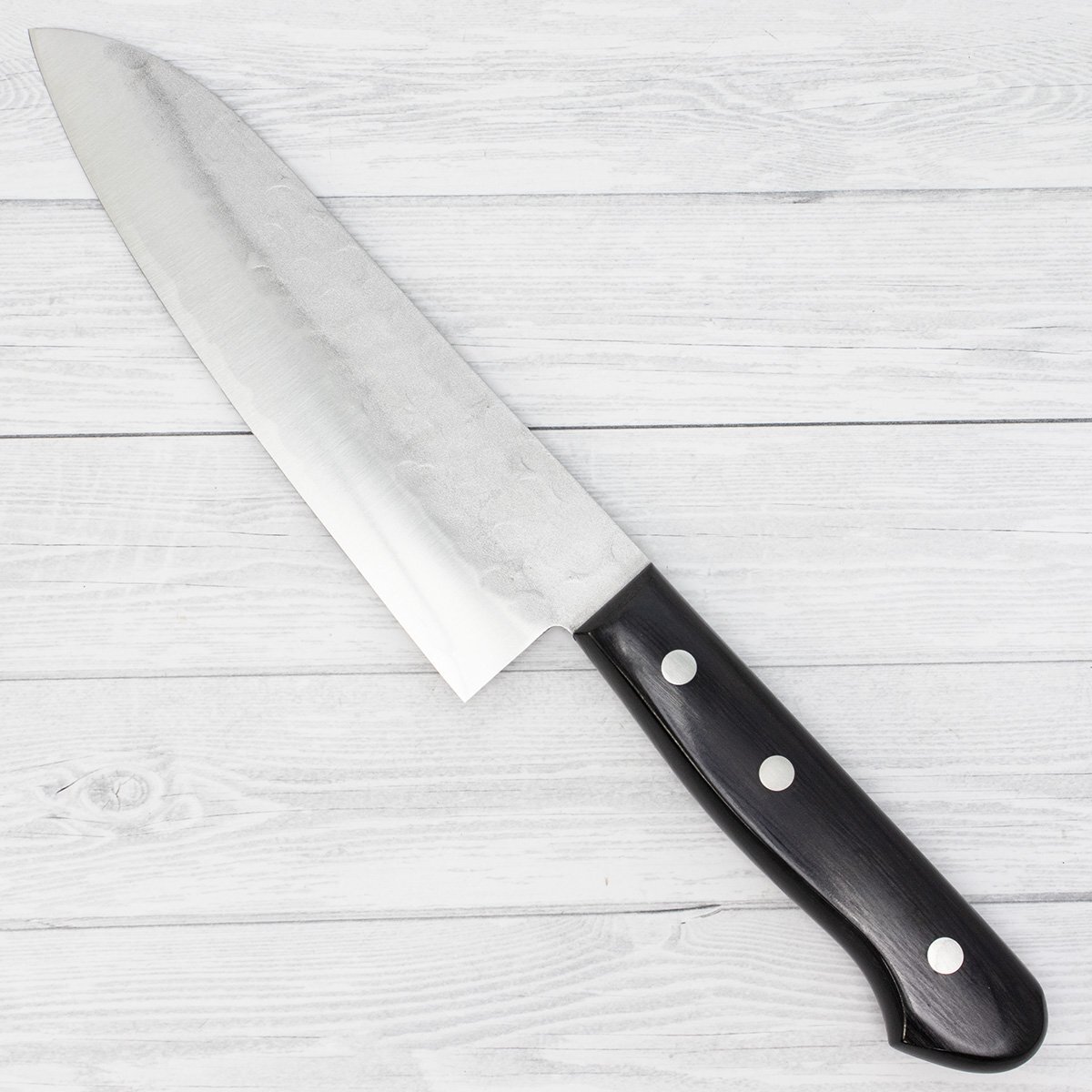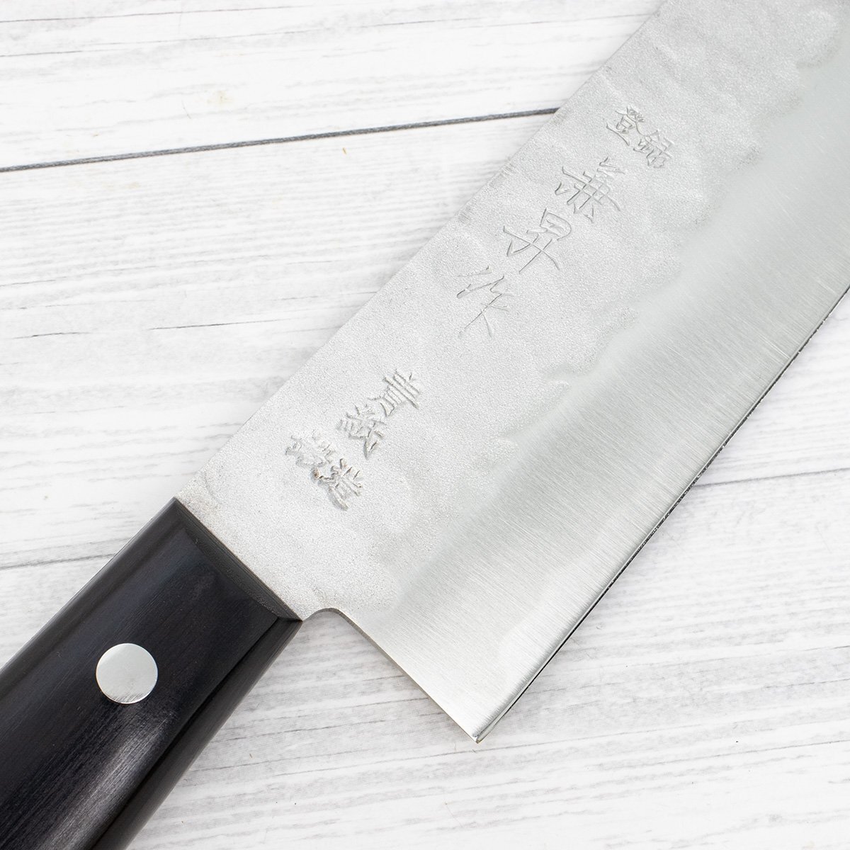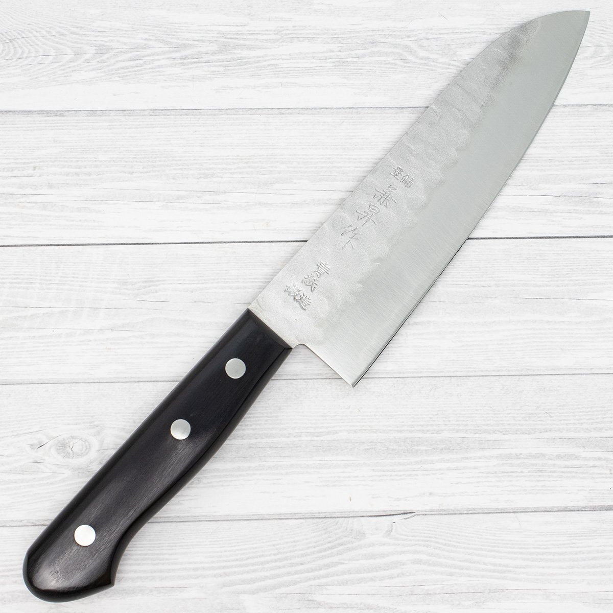 兼昇作 ヤスキ 青鋼 鍛造 鎚目 三徳包丁 165mm
