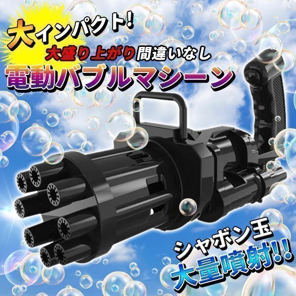 電動式シャボン玉マシン シャボン玉 マシーン バブルマシン ガトリング銃型 しゃぼん玉製造機 扇風機 ファン お風呂 おもちゃ 黒 ブラック