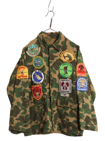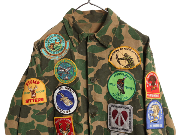 商品名 | 70s 80s ★ ダックハンター カモ ワッペン ハンティング ジャケット メンズ S / 古着 ヴィンテージ アウトドア 迷彩 カバーオール コットン |