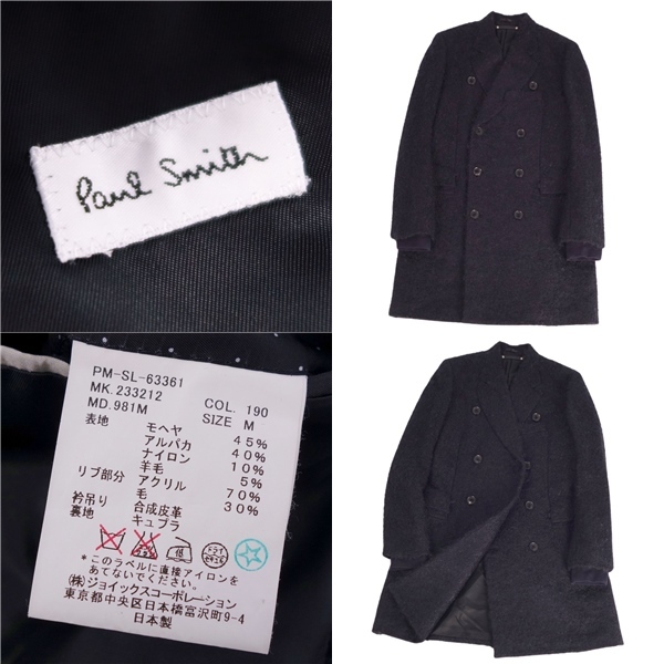 美品 ポール・スミス Paul Smith コート ロングコート ダブルブレスト モヘア アルパカ アウター メンズ M ネイビー |