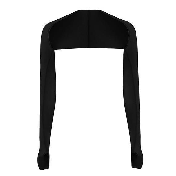 着るタイプで、親指を通してまったくずれなくなるアームカバーです。
