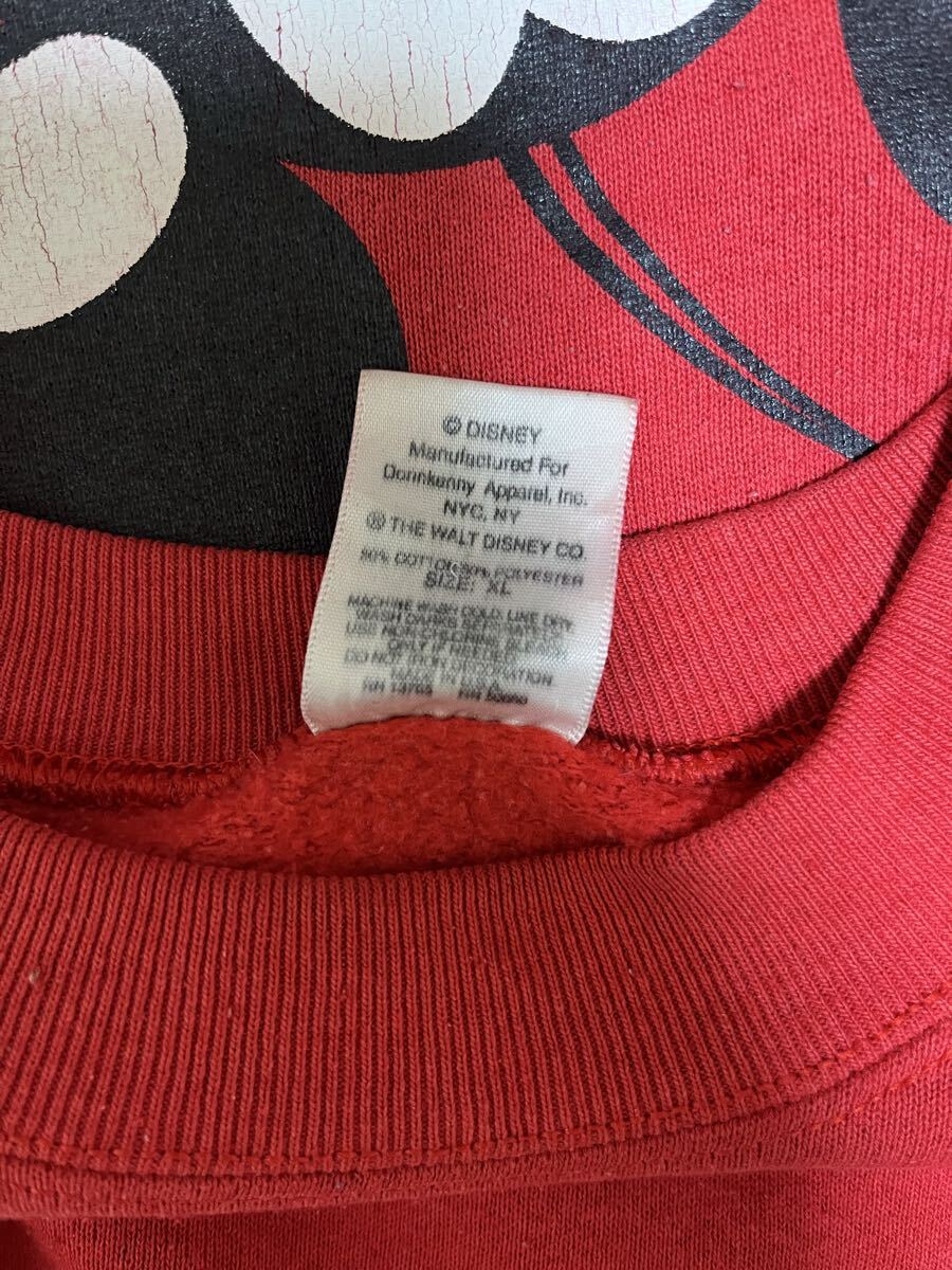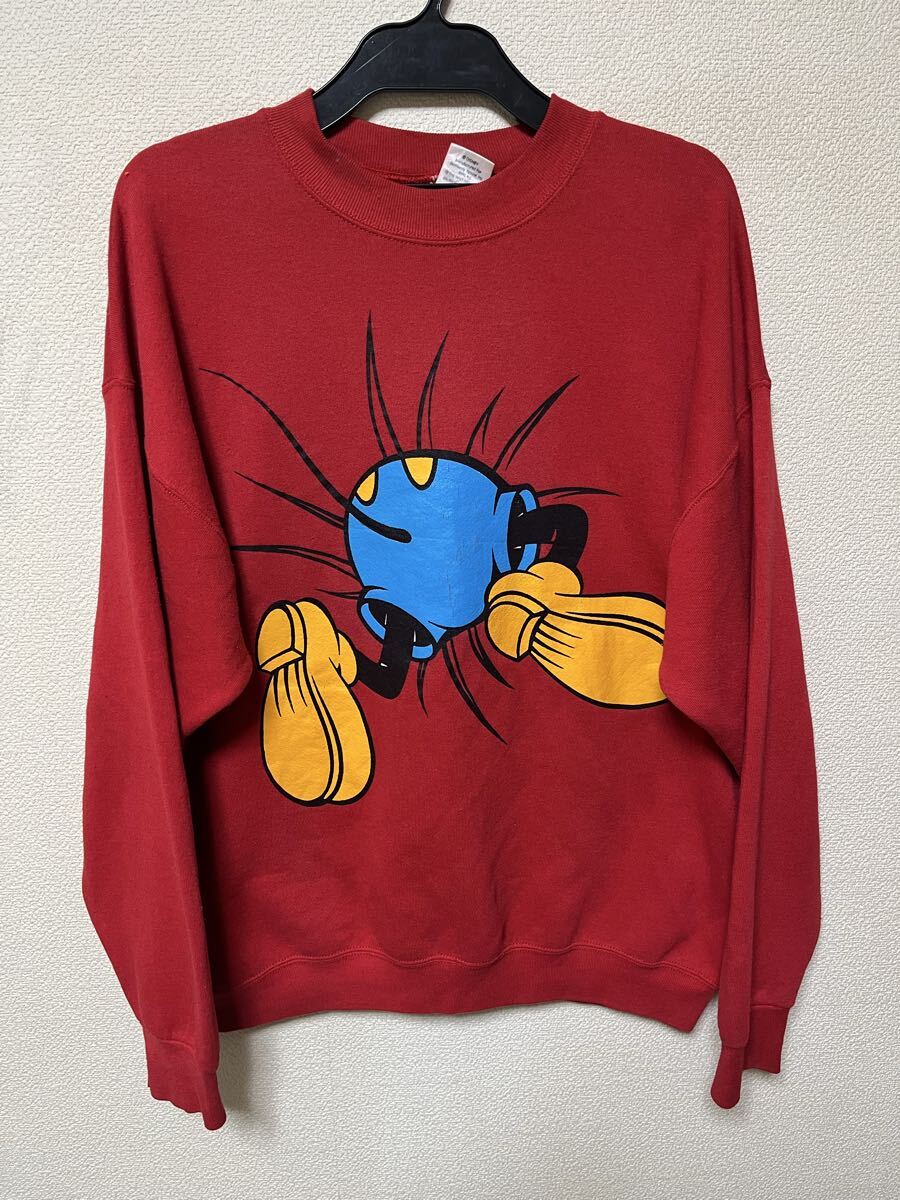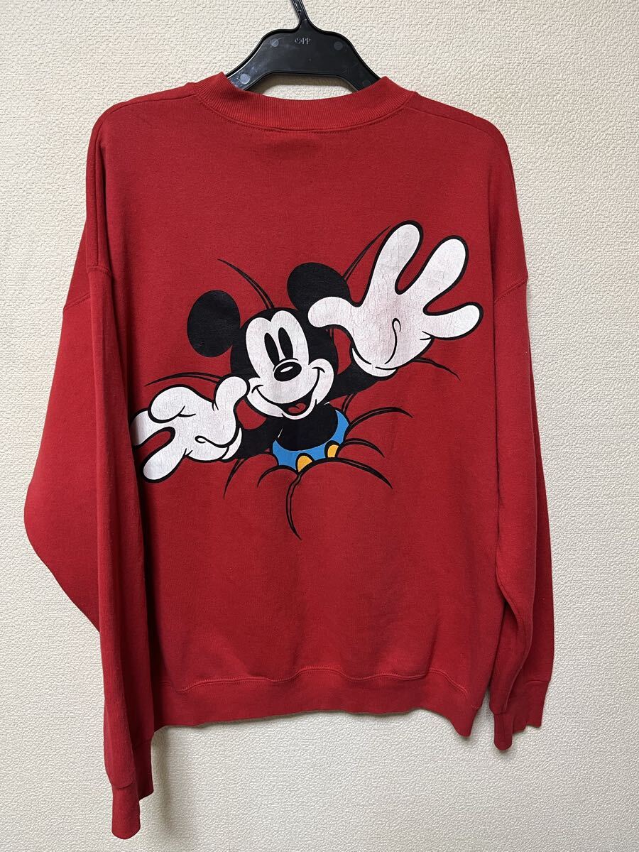 80s 90s ビンテージ ディズニー ミッキーマウスのスウェットです。カラーはレッド、サイズはXL。ユーズドですが問題なく着れます。実寸はだいたい身幅61センチ、着丈67センチ、肩幅64センチ、袖丈59センチ程度。L-XLくらいの感じです。とてもかわいいデザインのミッキーマウスものになります。男女問わずにどうぞ。配送はレターパックプラスか定形外かゆうパック元払いのみ