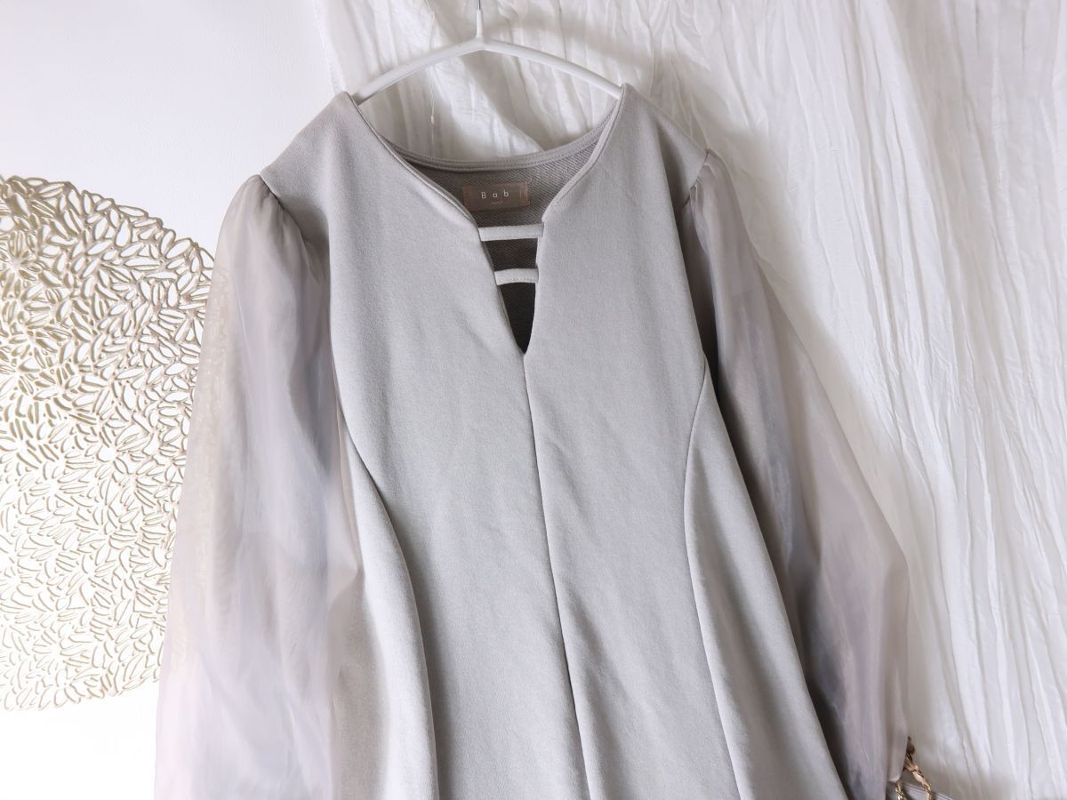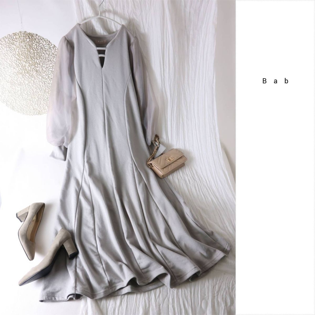 ブージュルード/Bab☆洗える フレアーライン長袖オーガンジーワンピース Sサイズ☆M-B 5344