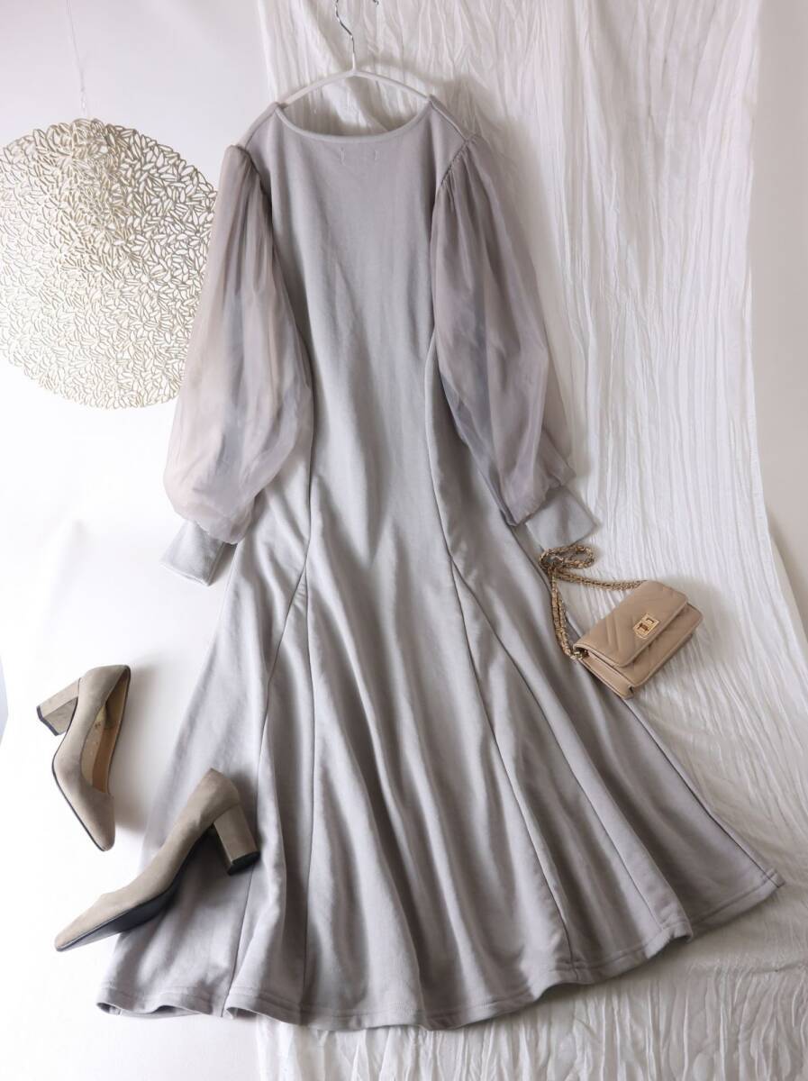 デザイン性抜群で透け感も無いので、1枚着るだけでコーディネートが完結します。オーガンジーの品の良さを活かして、女子会やお食事会等お呼ばれの場面でも着映えし、袖口のリブがデイリーユースでも着まわしのできるカジュアルさを演出します。
