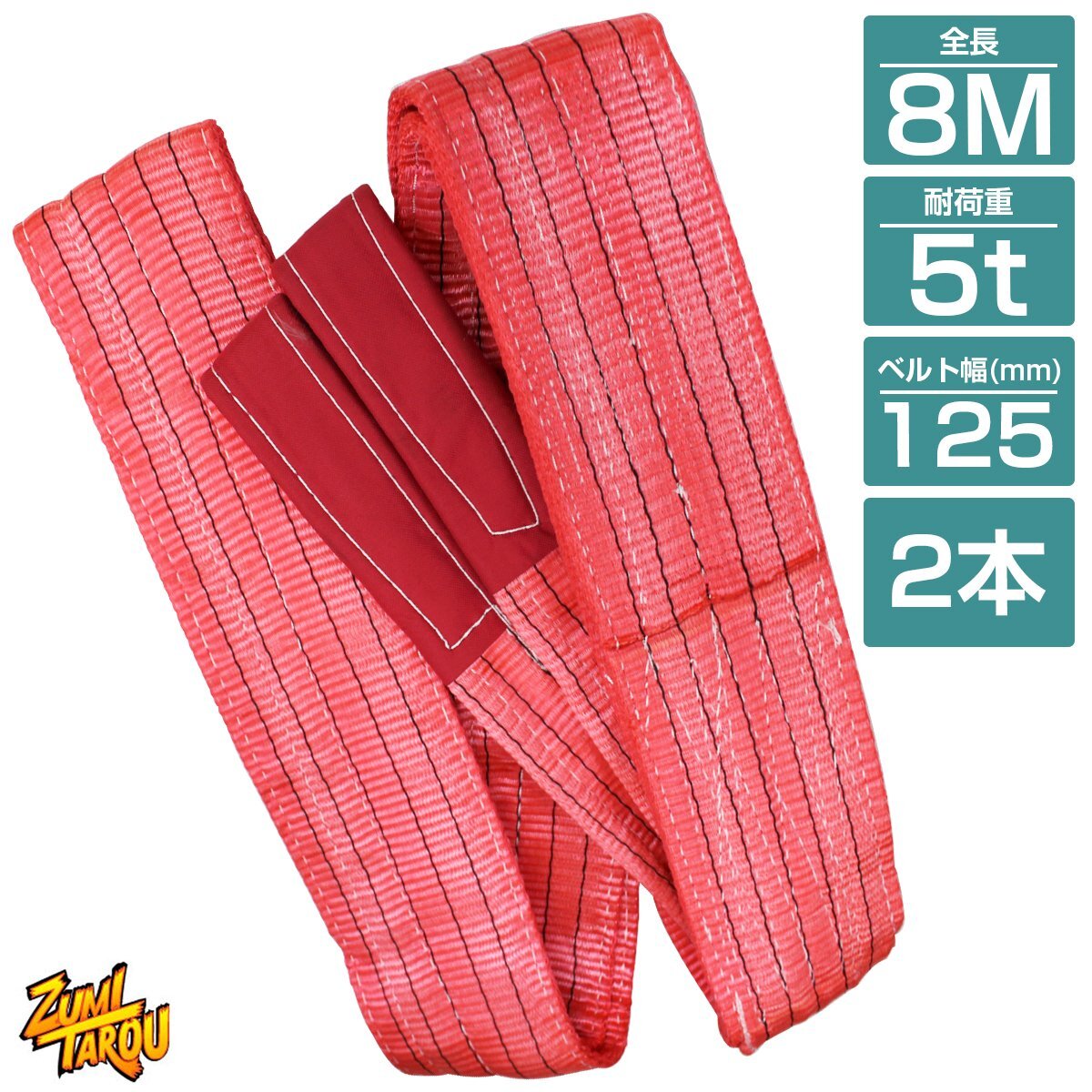 [2本 セット/耐荷5t/長さ 8m] スリング ベルト 吊上げ ナイロン クレーン ロープ 荷吊り 玉掛け 牽引 運搬 5000kg 5トン 幅125mm