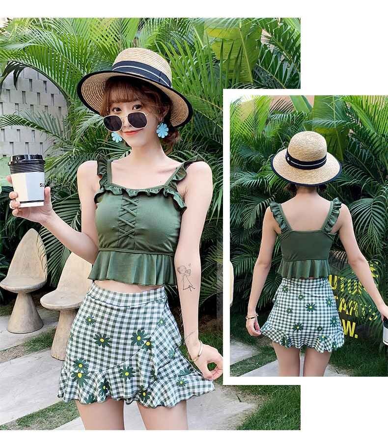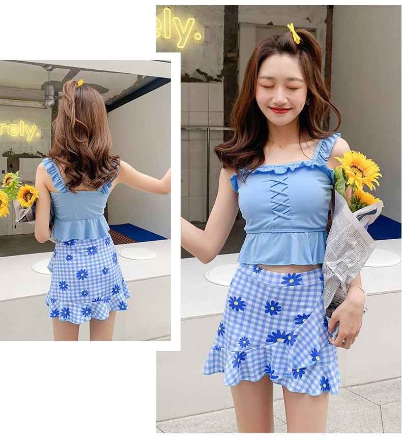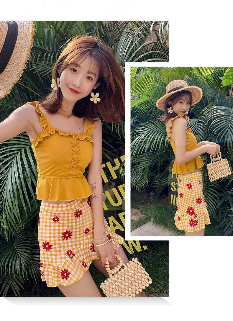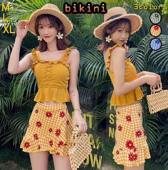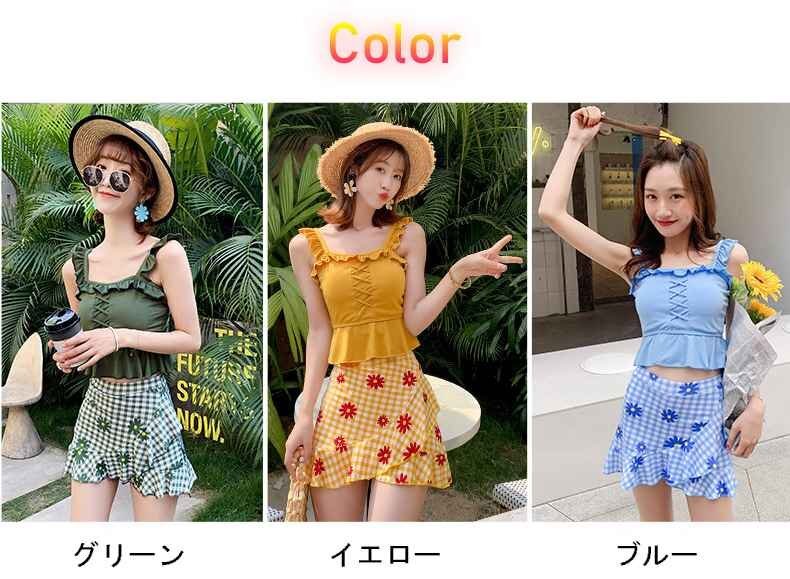 胸元は露出が少なく、フリル付いてかわいい!さらにフレアスカートの花×ギンガムチェック柄が◎