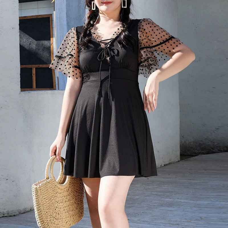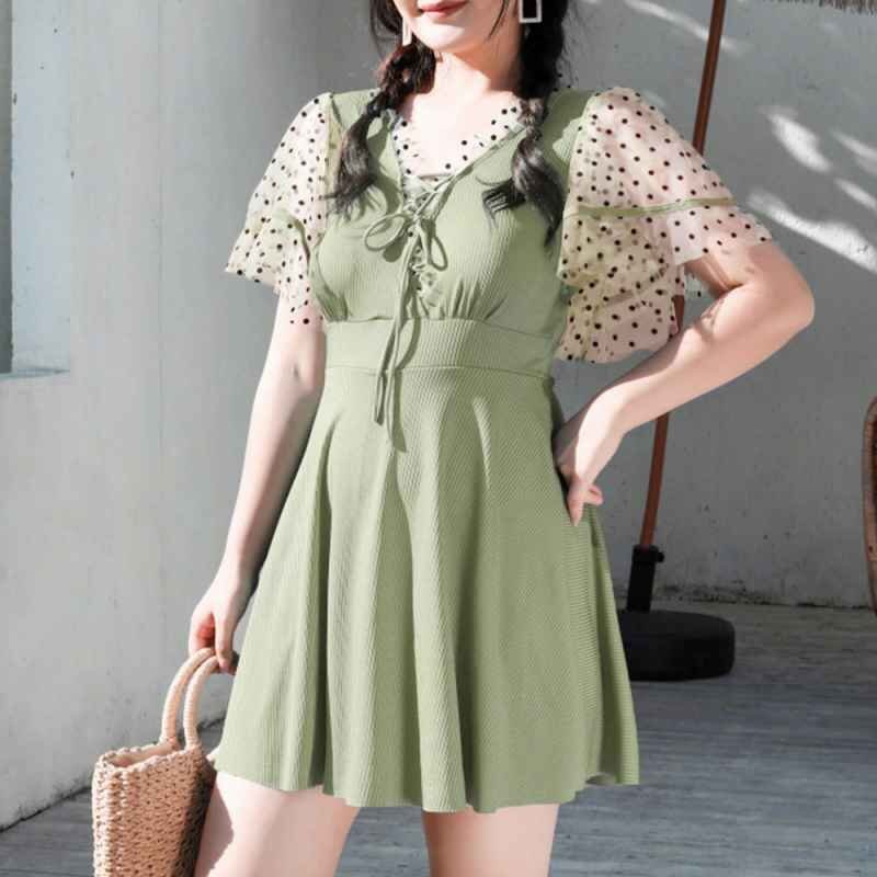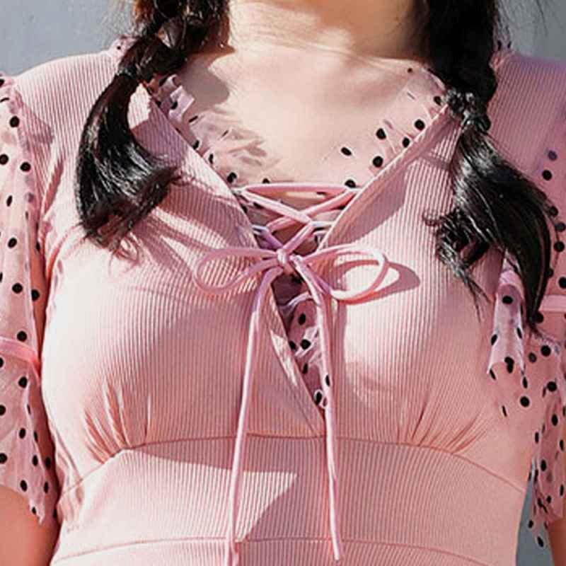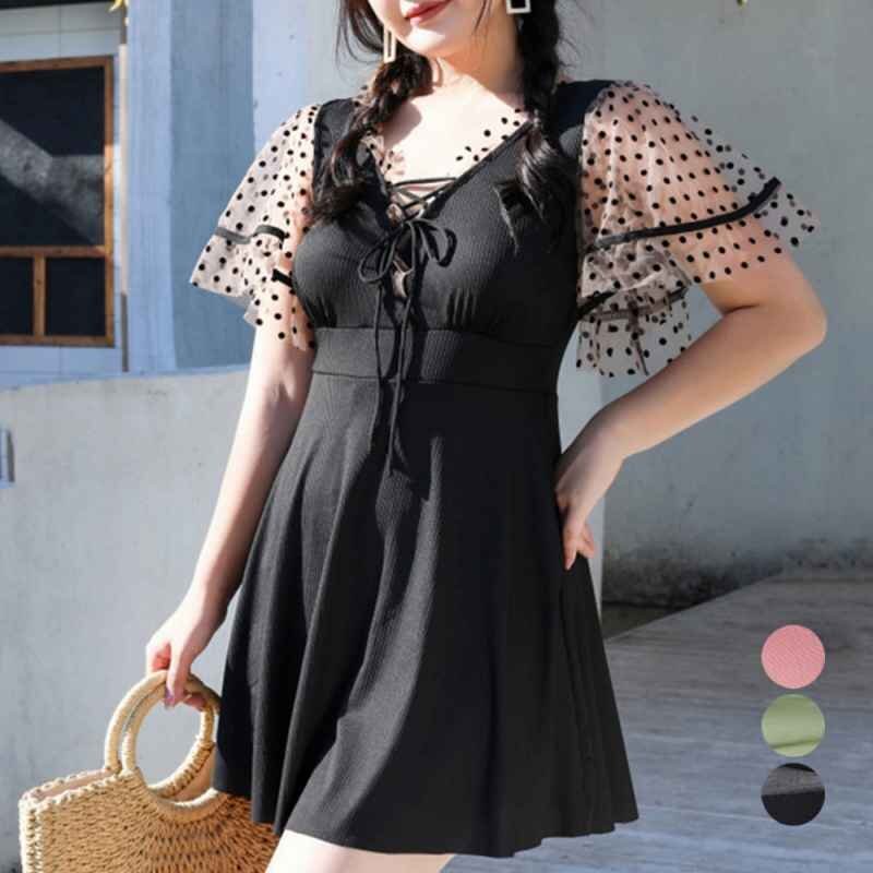 セクシーな印象を与えてくれるレースアップデザインのチュール袖ワンピース水着です。