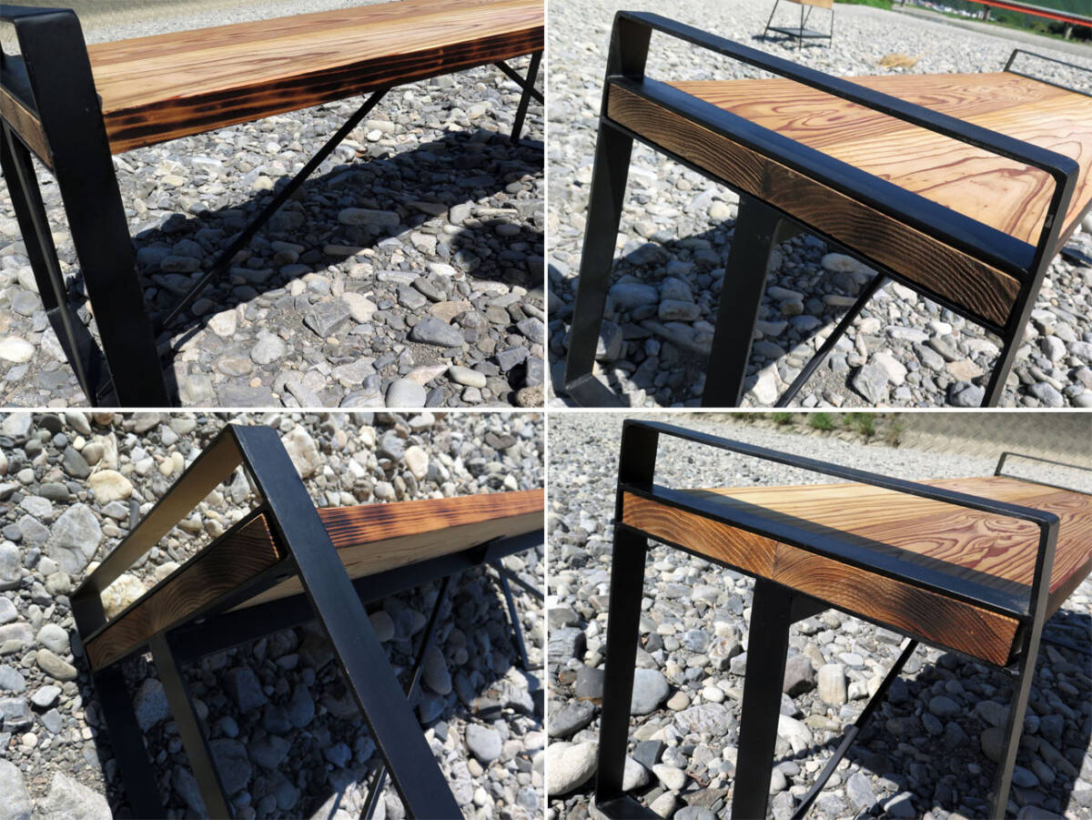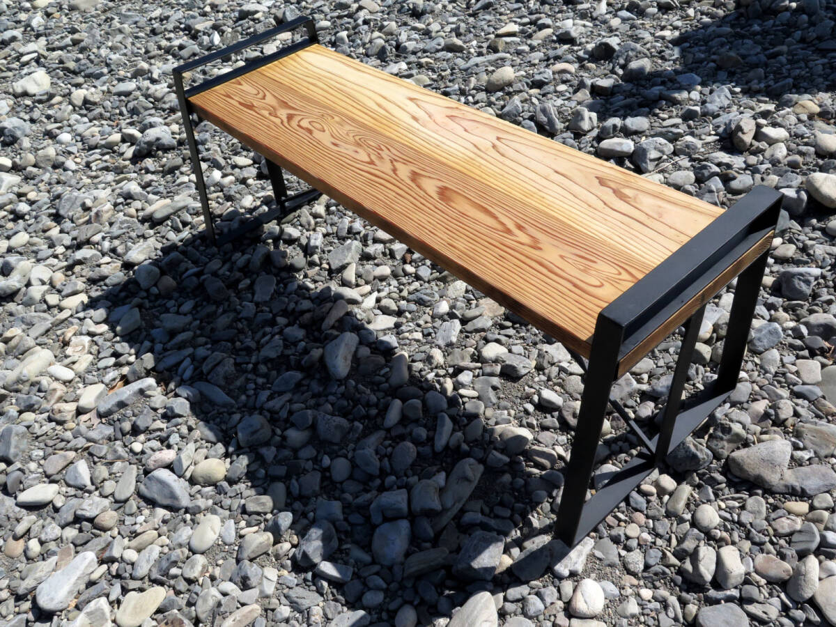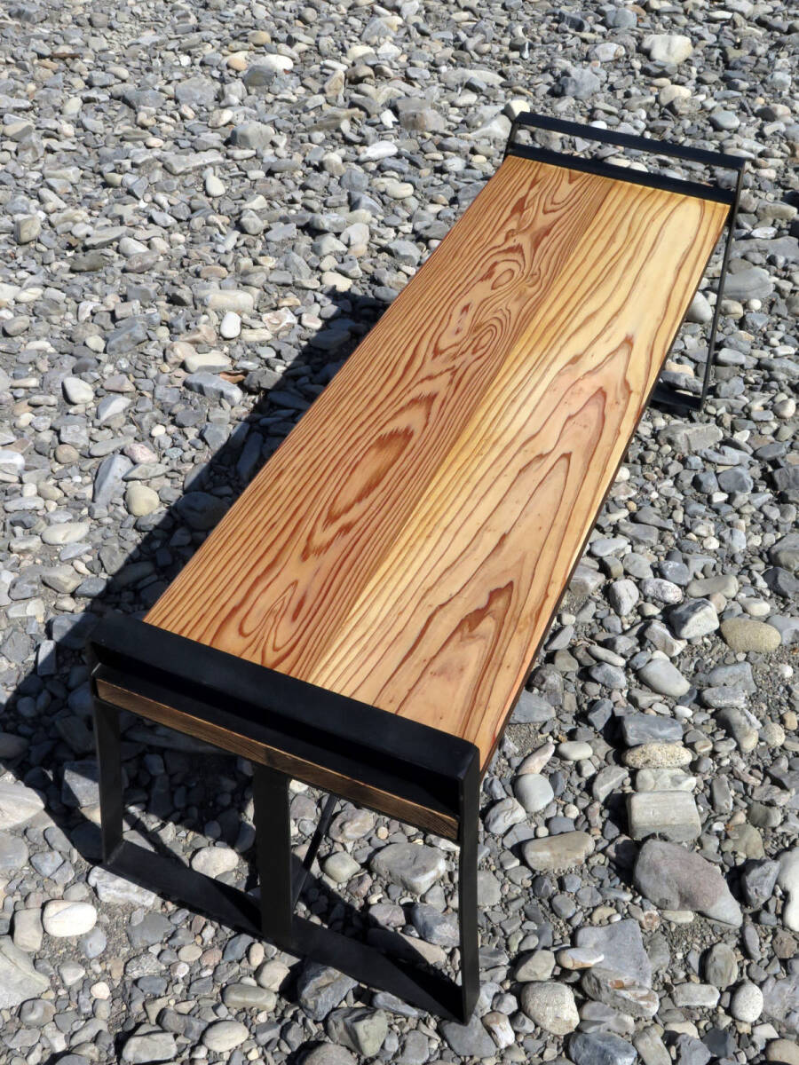 手造り 一点物 天然木 杉無垢材 溶接 台形 脚 インダストリアル ウッド アイアン ハンドメイド ロング ベンチ アンティーク キャンプ BBQ 2