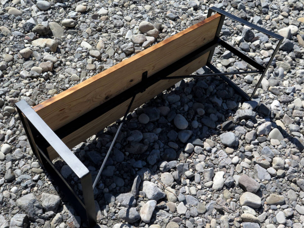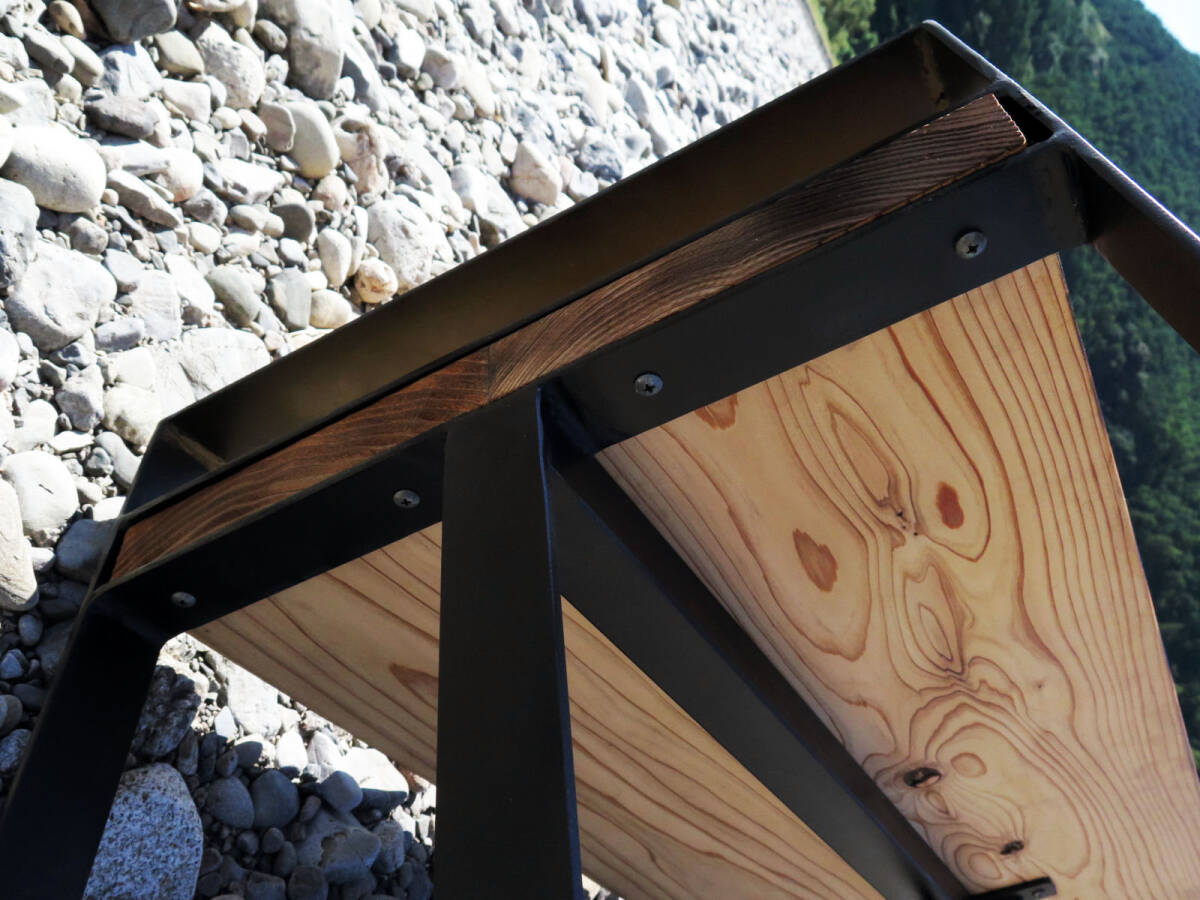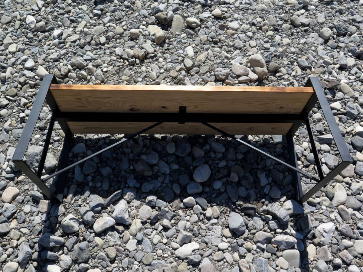 手造り 一点物 天然木 杉無垢材 溶接 台形 脚 インダストリアル ウッド アイアン ハンドメイド ロング ベンチ アンティーク キャンプ BBQ 2