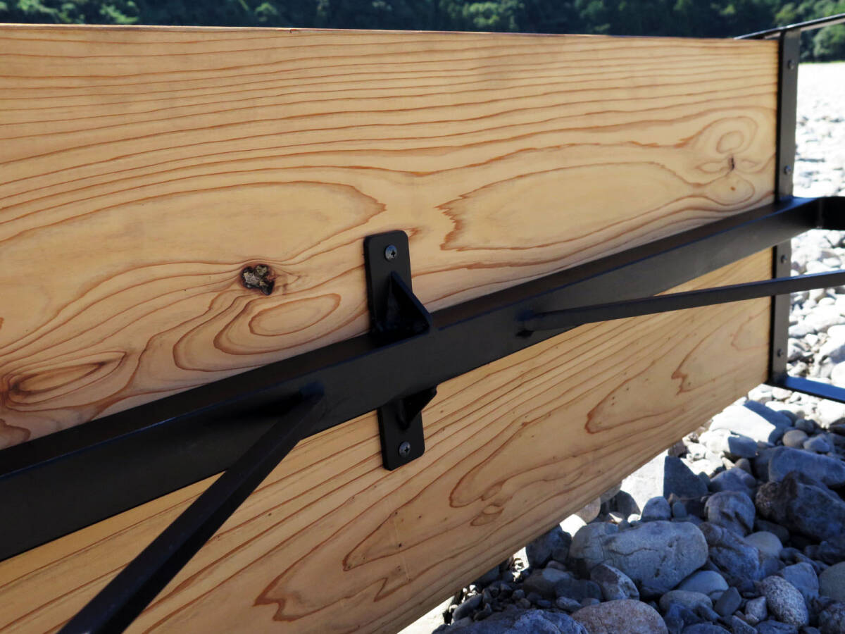 座るもので負荷がかかりますので足回りに角鋼や角パイプで安定感と強度もこだわりました。