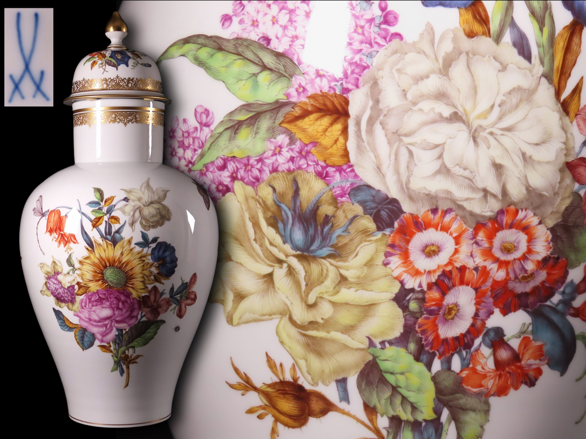 西洋磁器の頂点 Exclusive Collection MEISSEN マイセン 『FFブルーメ』 最上級の花絵 蓋付花瓶 高46.3cm 専用箱付 本物保証 | |||