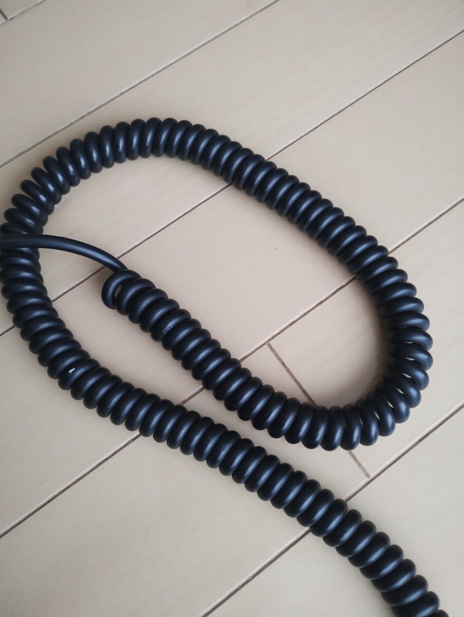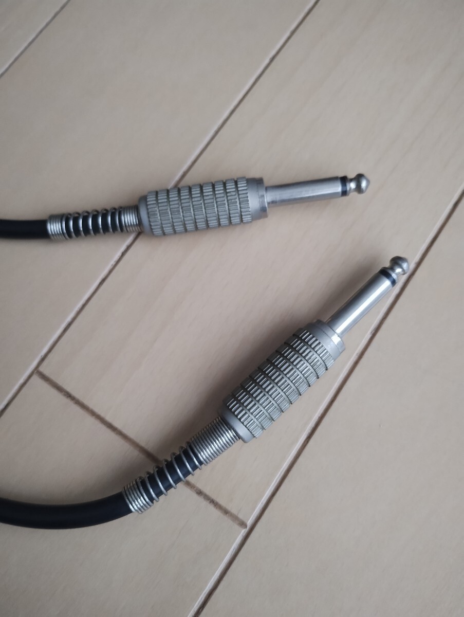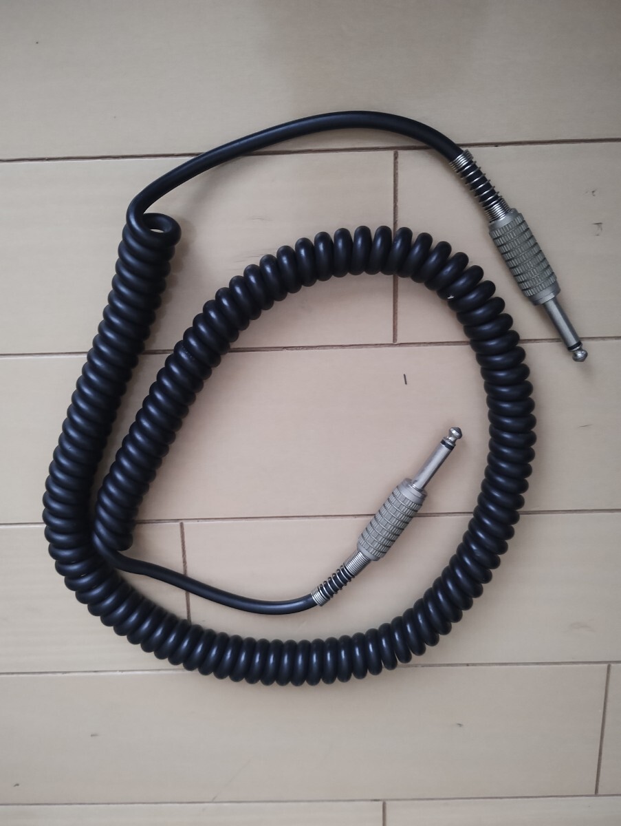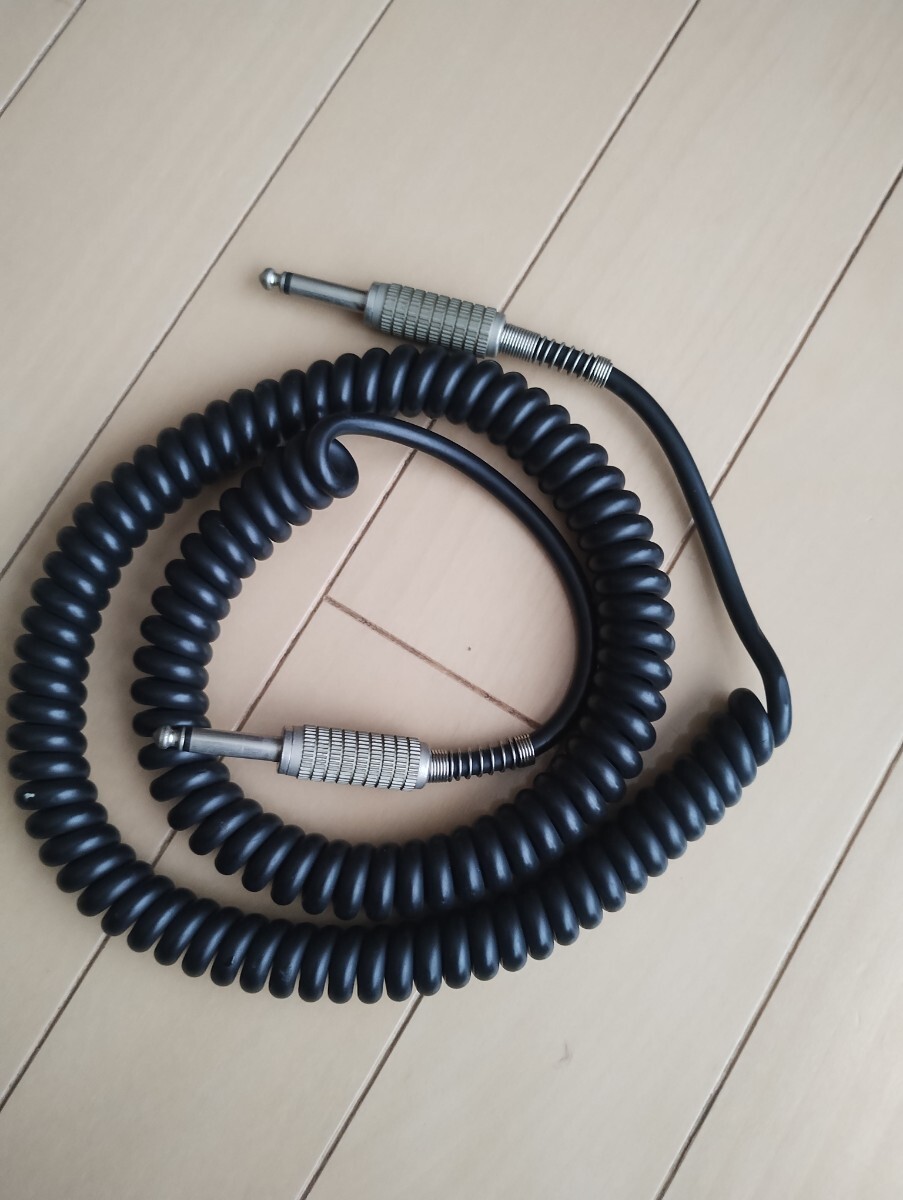 伸び縮みするギターシールドです。1.5mから2.0mくらいは伸びると思います。