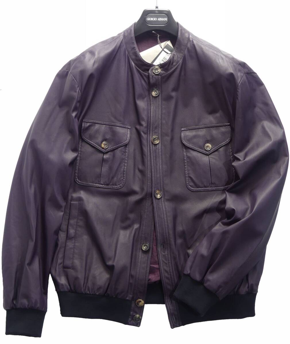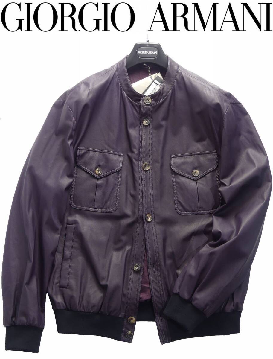 秋冬物新品911,000円GIORGIO ARMANIアルマーニ★比類の無いお洒落と上質を楽しめる伸縮性◎最高級レザーブルゾン【50=日本L~XXL】