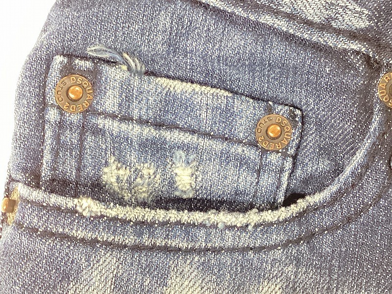 ディースクエアード DSQUARED2 ダメージスキニーパンツ ブルー S72LA0706
