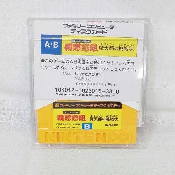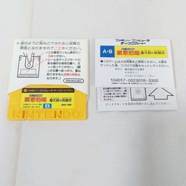 ファミコンのディスクシステム用ディスクカード、 『おもいっきり探偵団 覇悪怒組 魔天郎の挑戦状』 のジャンク扱い品です。 動作確認を行っていないため、 ジャンク扱いとして出品しております。 説明書は欠品しております。