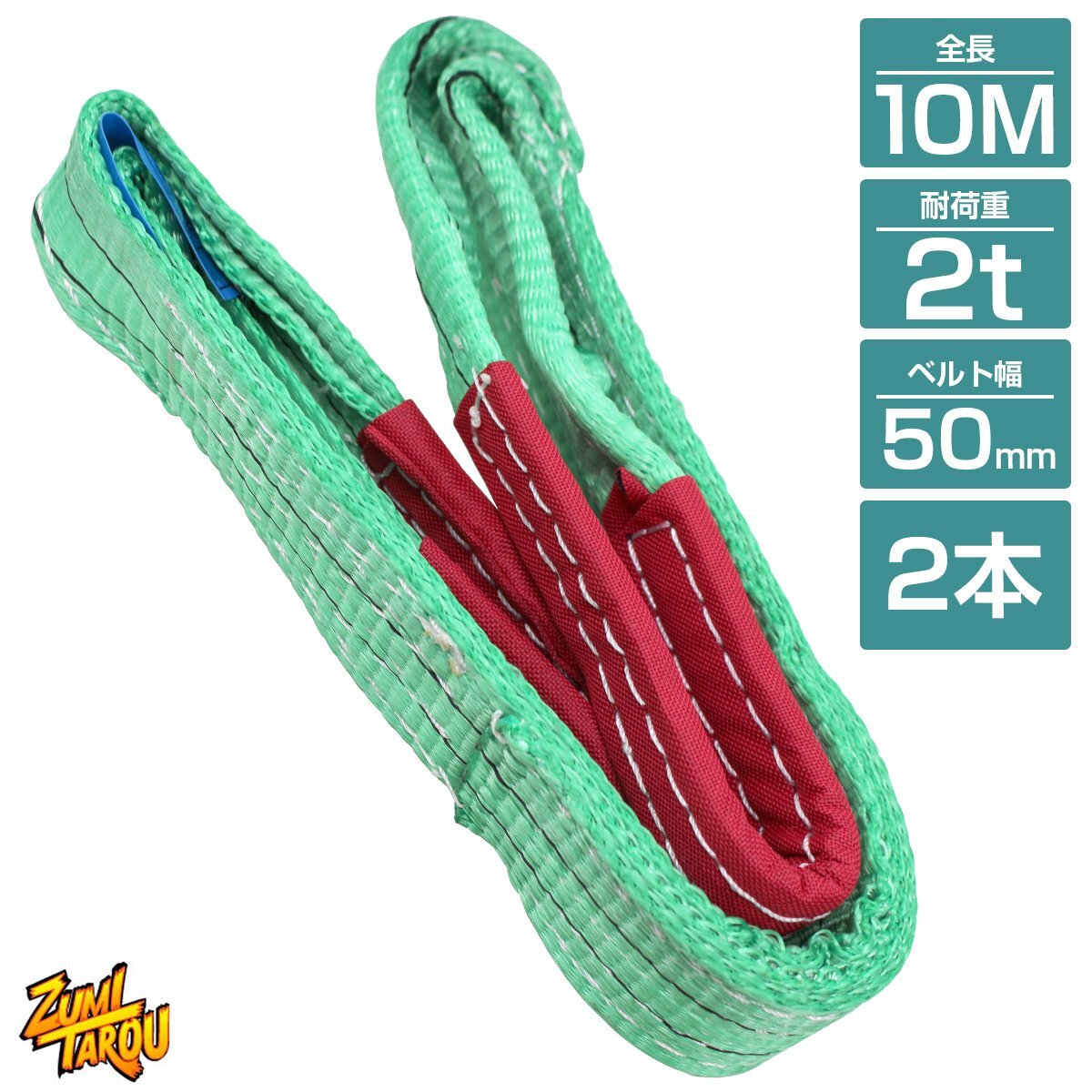 [2本 セット/耐荷2t/長さ 10m] スリング ベルト 吊上げ ナイロン クレーン ロープ 荷吊り 玉掛け 牽引 運搬 2000kg 2トン 幅50mm