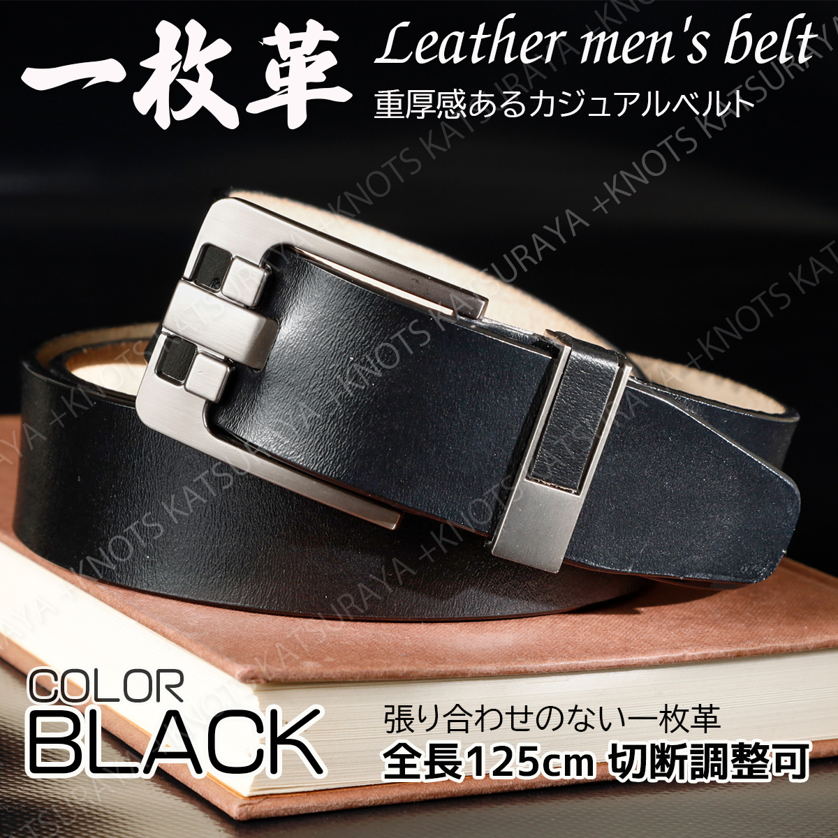 メンズベルト本革★ブラック黒★長さ調整 レザー カジュアル ベルト 太い 太め 長い 長め 一枚革 チノパン 普段使い デニムa439