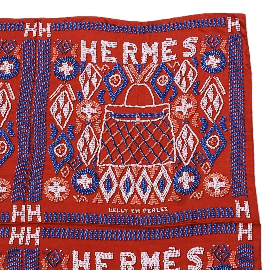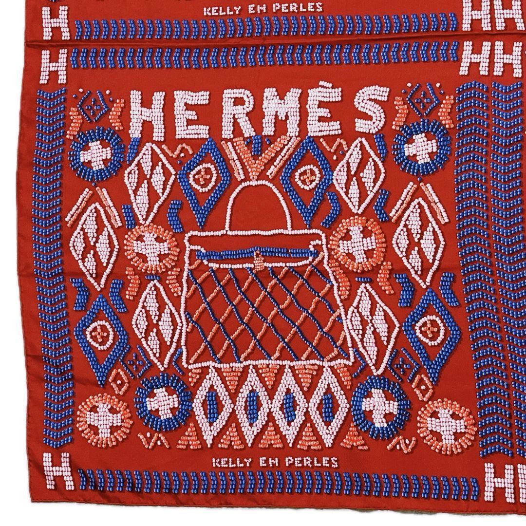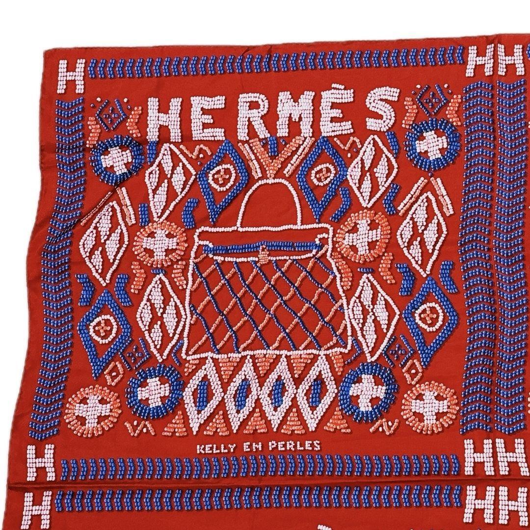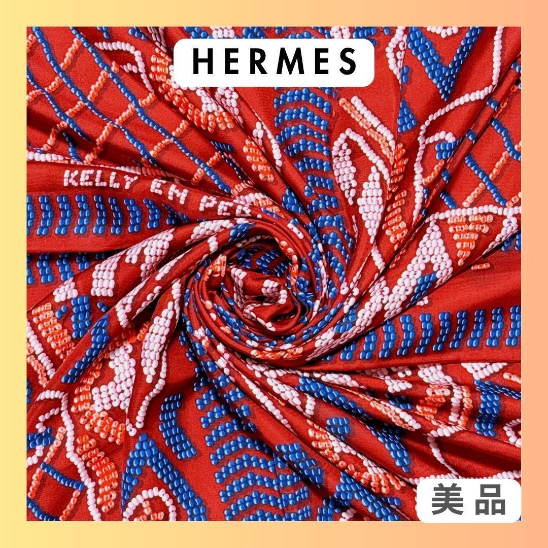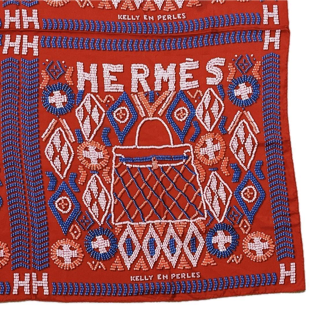 エルメスの人気モチーフ「Kelly(ケリー)」をビーズ細工風に描いた印象的なデザイン。140サイズの大判はショールのようにも使え、首元や肩掛け、バッグに合わせても華やかなアクセントになります。入手困難なデザインでコレクションにもおすすめです。