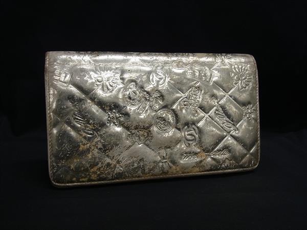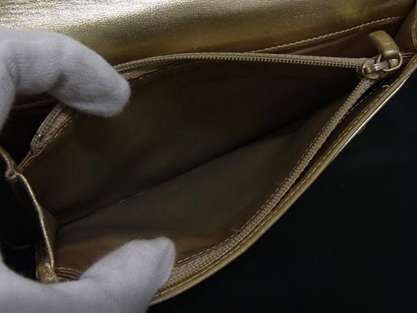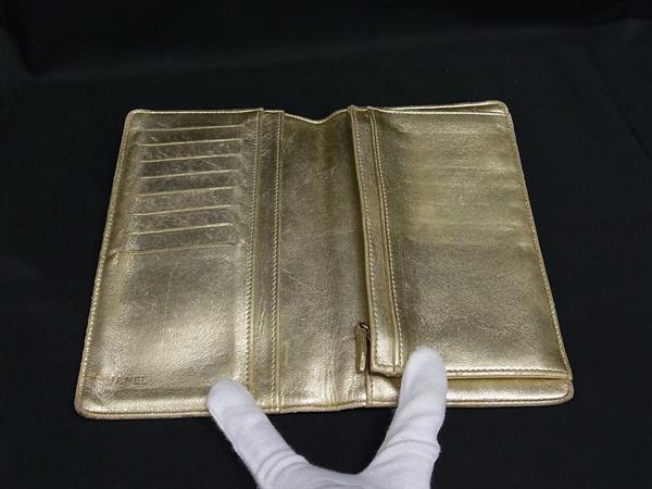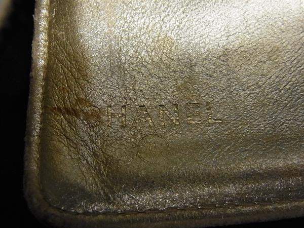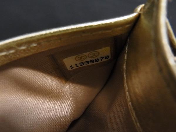 1円 CHANEL シャネル ココマーク アイコン シンボルチャーム パテントレザー 二つ折り 長財布 ウォレット 札入れ ゴールド系 FV1089