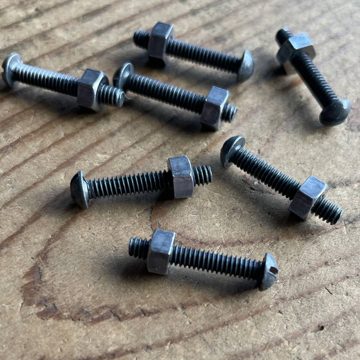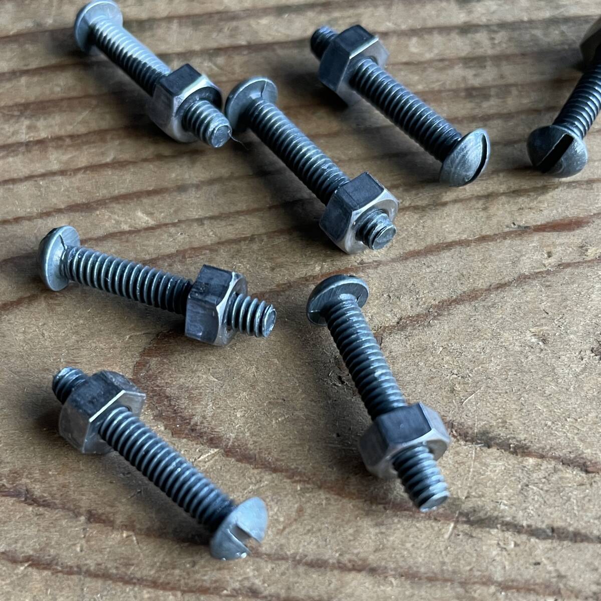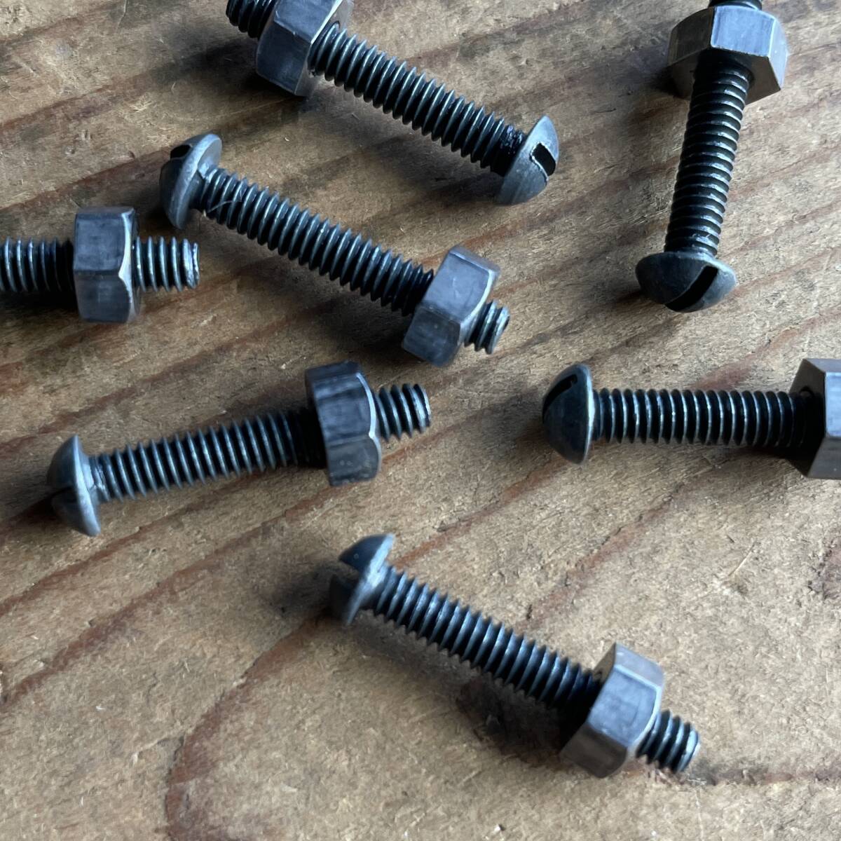 ・鉄の W 1/8(1分)×20ミリの丸頭マイナスボルトネジとナットです。