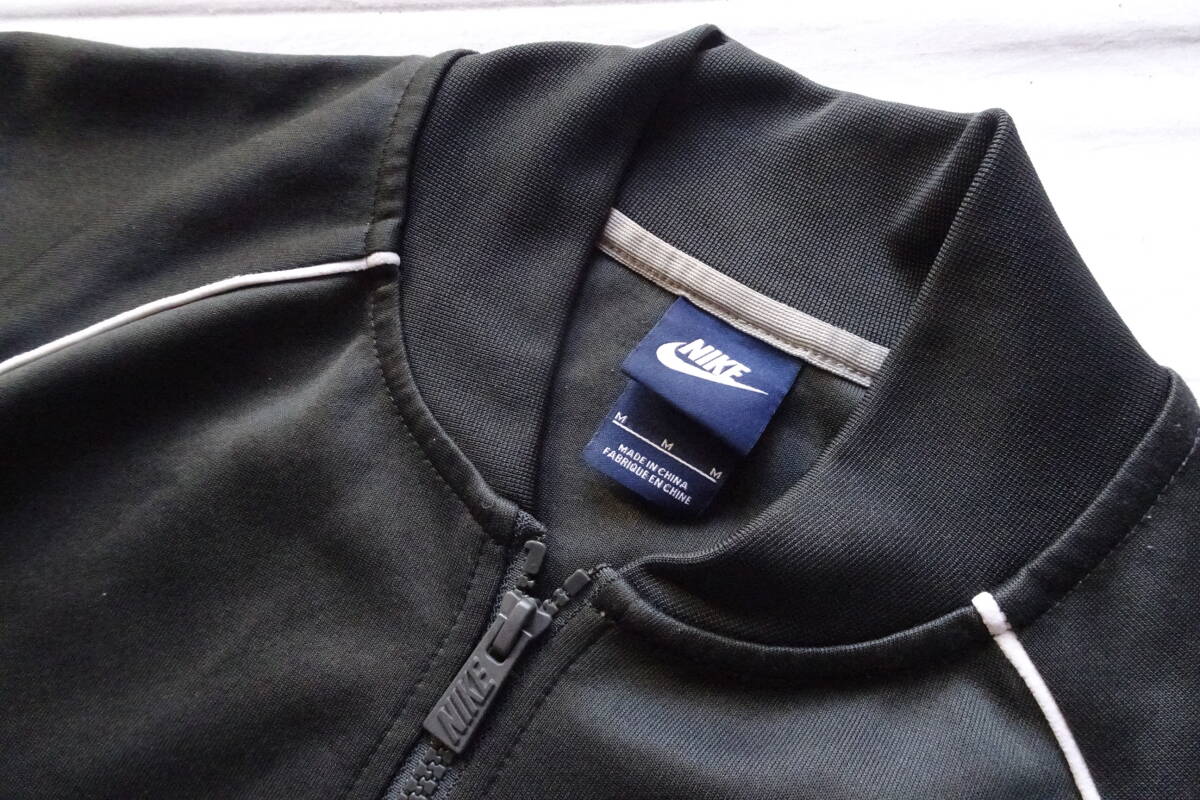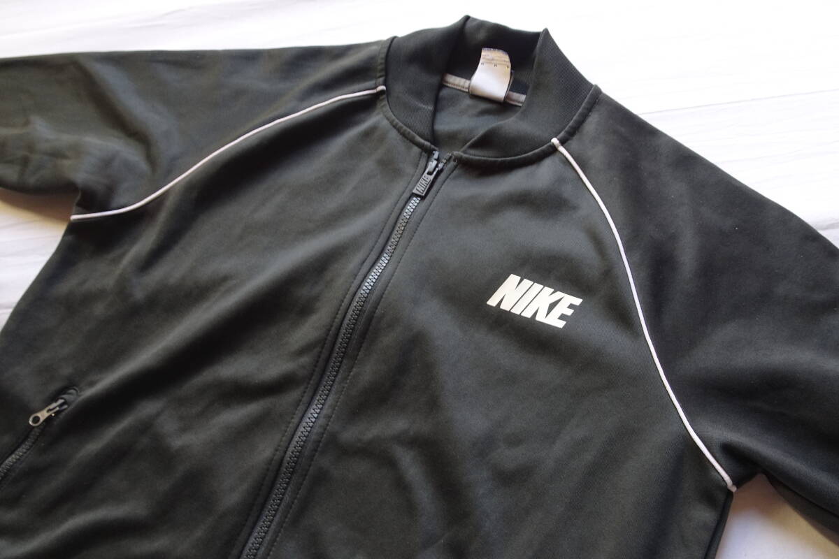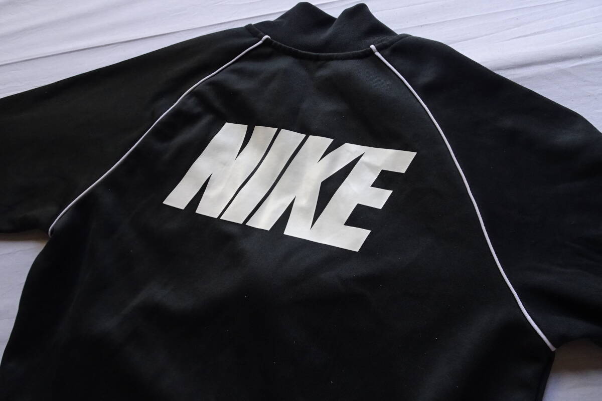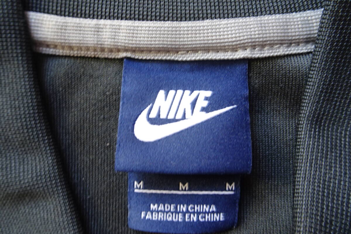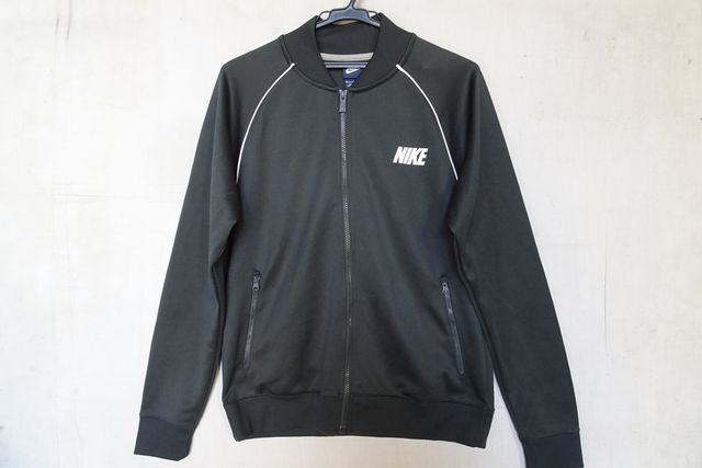 NIKE/ナイキ/長袖トラックジャケット/ジャージ素材/前ジップアップ/白パイピング/バックロゴプリント/チャコールグレー/Mサイズ(10/2R7)