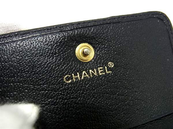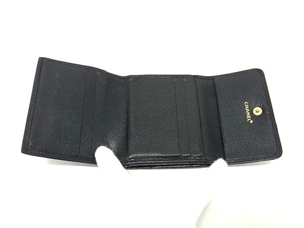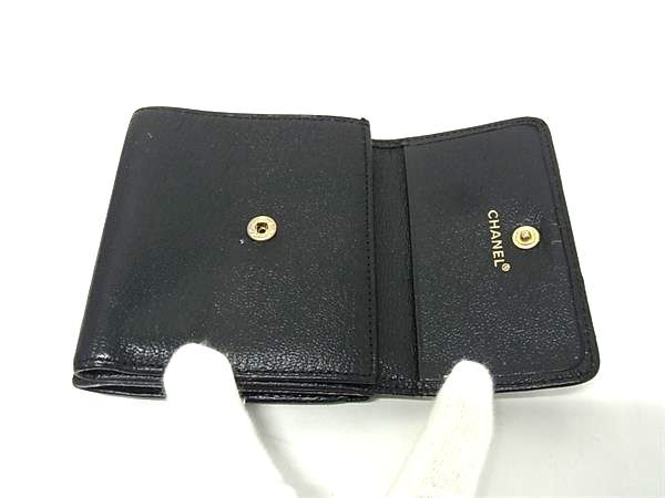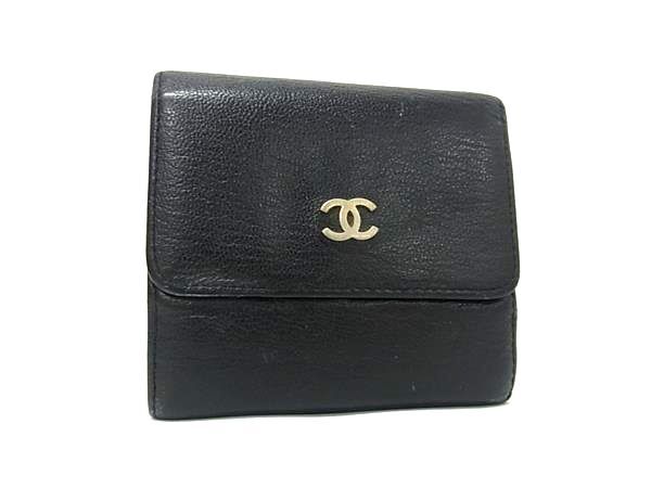 1円 CHANEL シャネル ココマーク レザー 三つ折り 財布 ウォレット 札入れ 小銭入れ レディース ブラック系 FV1857