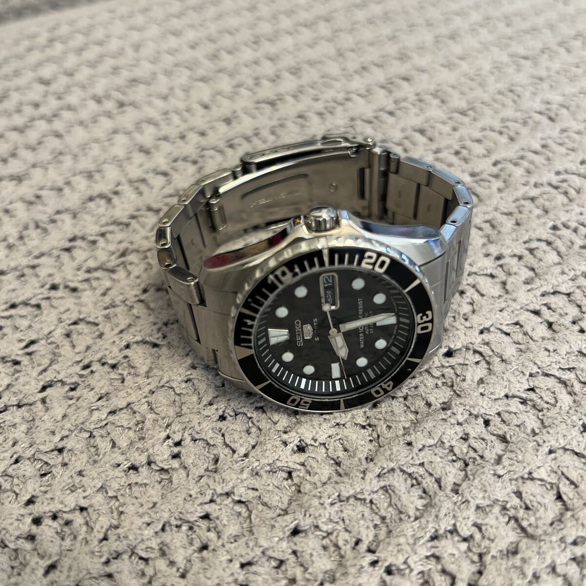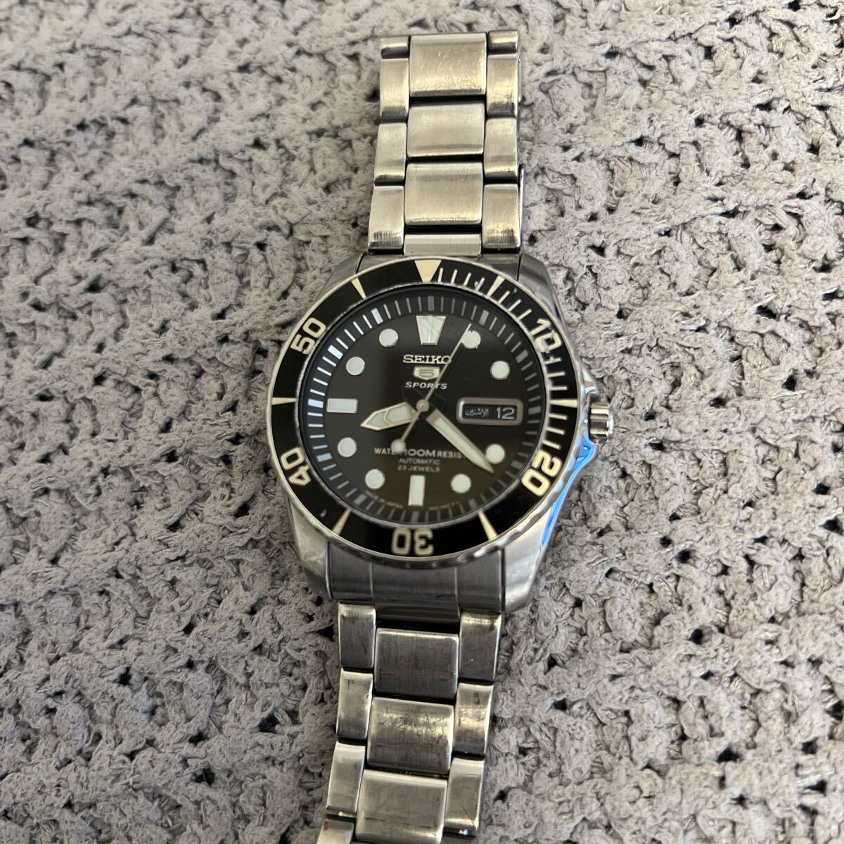 セイコーの人気シリーズ「5 SPORTS」から、23石ムーブメントを搭載した自動巻きモデルです。黒文字盤にシルバーインデックスのスタイリッシュなデザインで、裏スケ仕様や回転ベゼルになります。