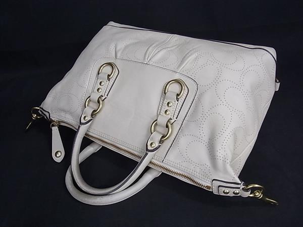 1円 COACH コーチ F17130 レザー 2WAY ショルダー トート ハンドバッグ 肩掛け レディース ベージュ系 BS0536