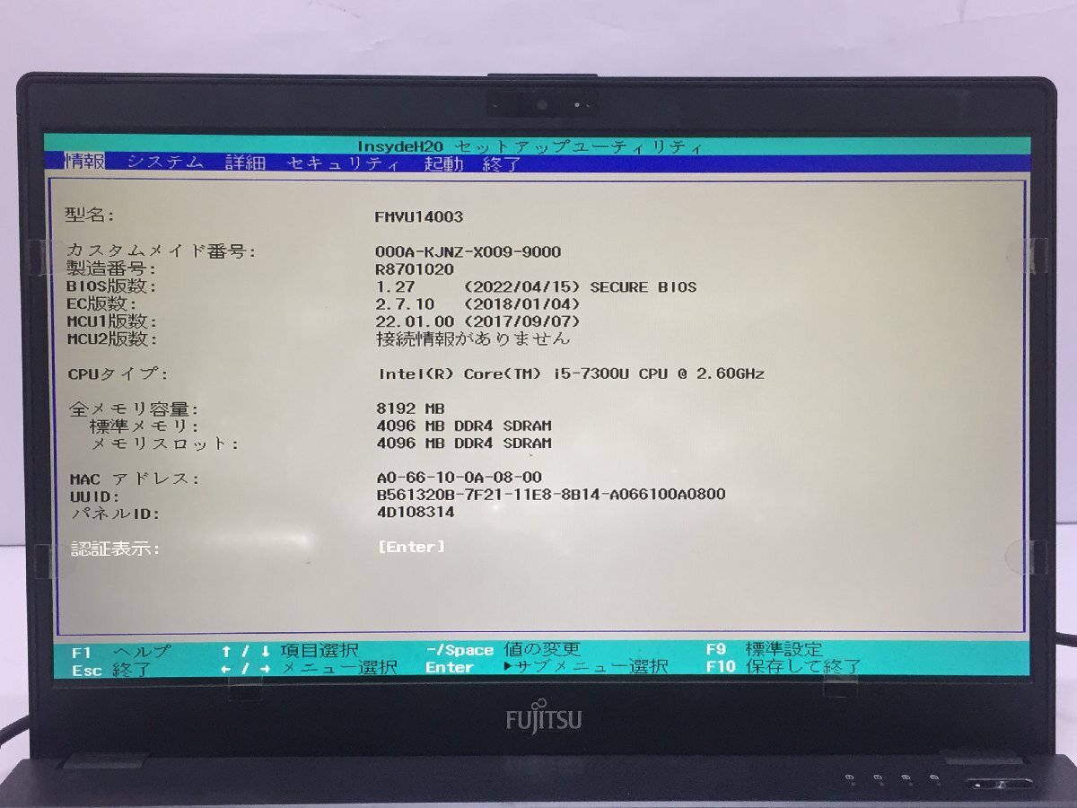 ジャンク/ FUJITSU FMVU14003 LIFEBOOK U938/S Intel Core i5-7300U メモリ8.19GB ストレージ無し 【K22061】