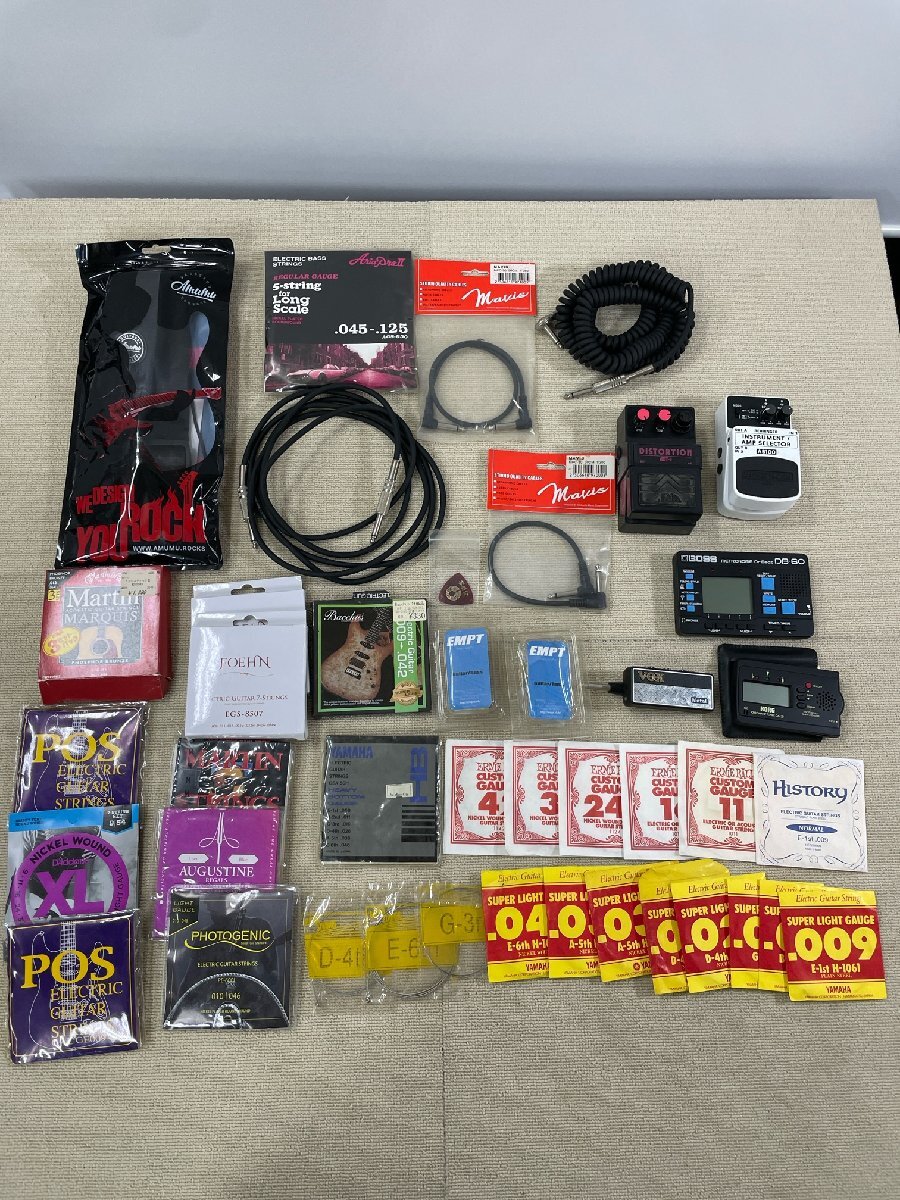 【一部未使用】ギターアクセサリー まとめて 弦,エフェクター,チューナー,ケーブル,ギターストラップ 他 MAVIS/ヤマハ,フェンダー,VOX