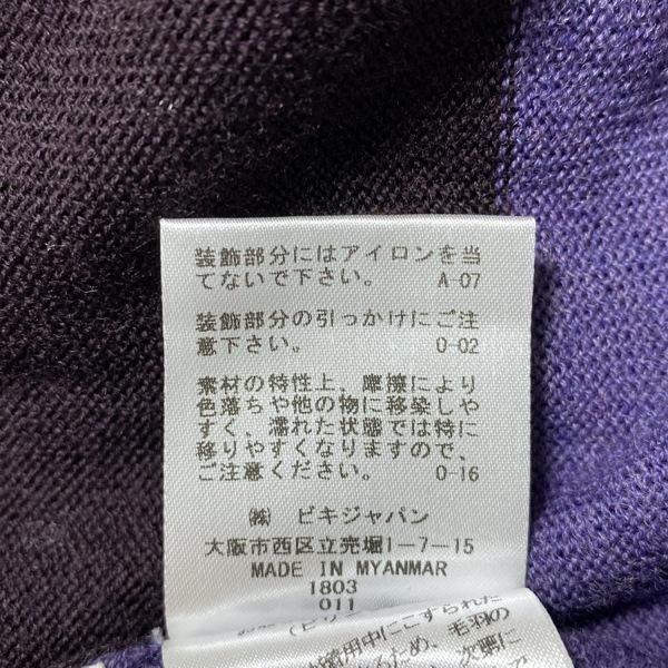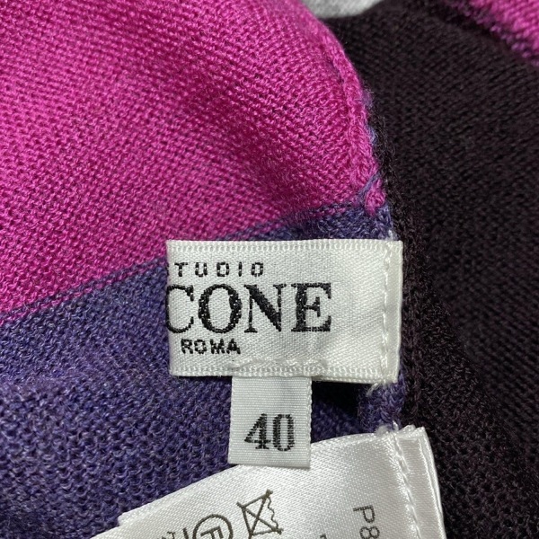 ピッコーネ PICONE 長袖セーター/ニット サイズ40 M - パープル×ピンク×マルチ レディース ハイネック/ストライプ/ラインストーン