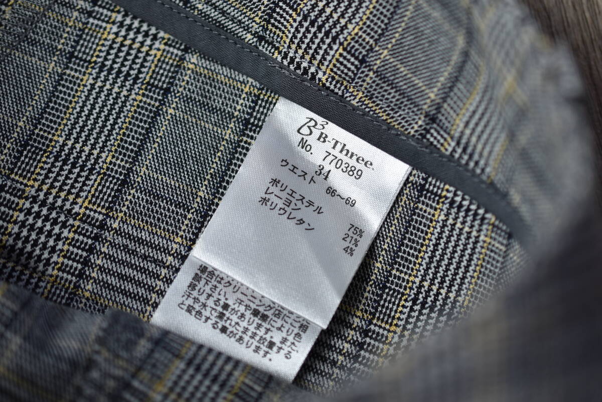B-Three ビースリー B3 ストレッチ入りチェック柄テーパードスリムパンツ サイズ34