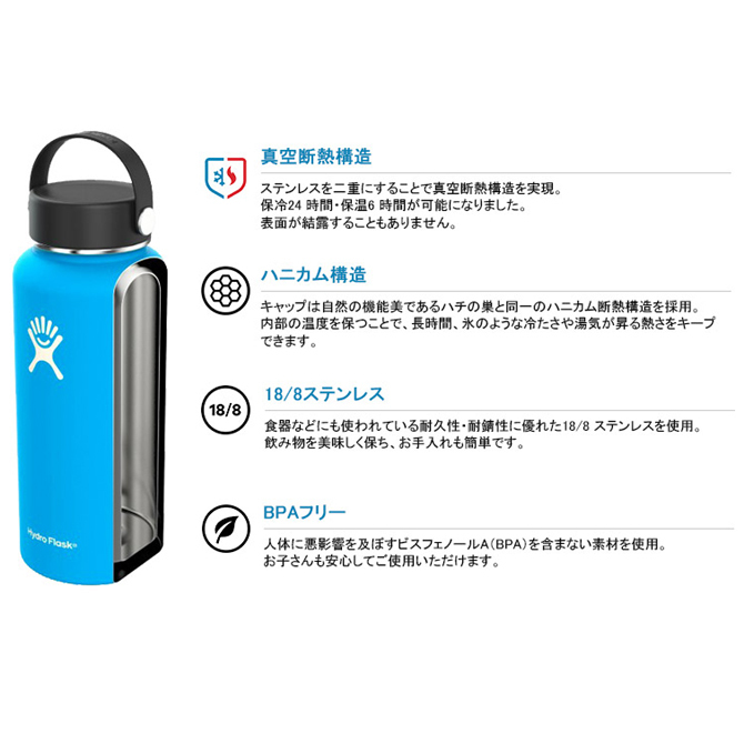 ハイドロフラスク Hydro Flask 32oz 946ml Wide Mouth ステンレスボトル Beachplum