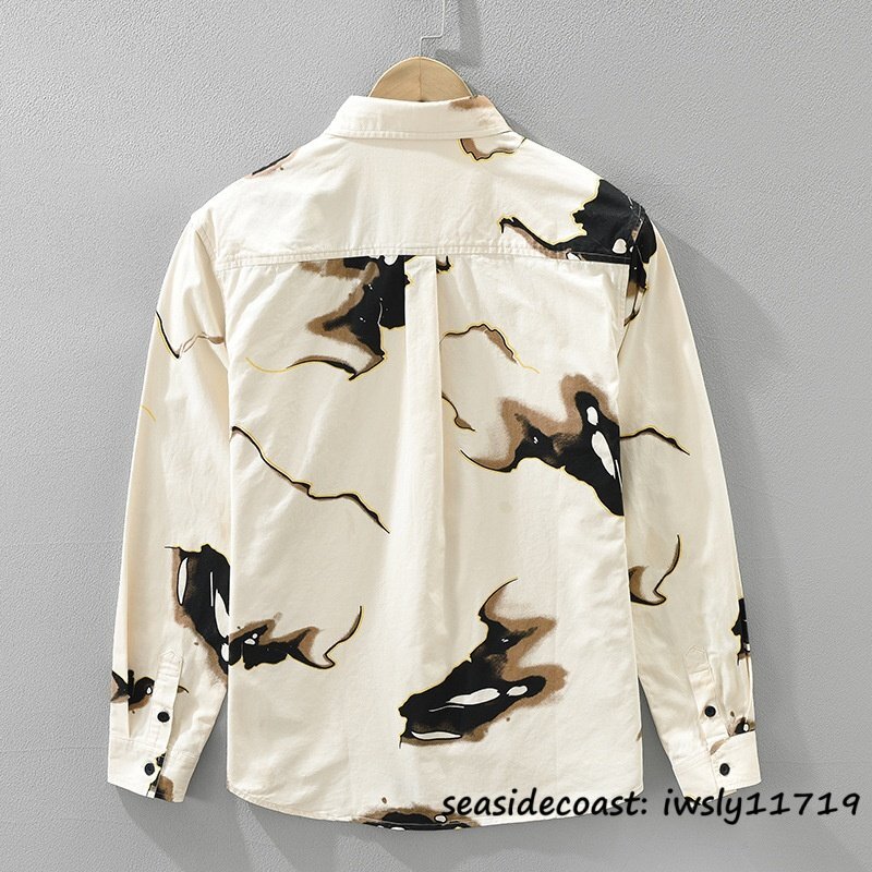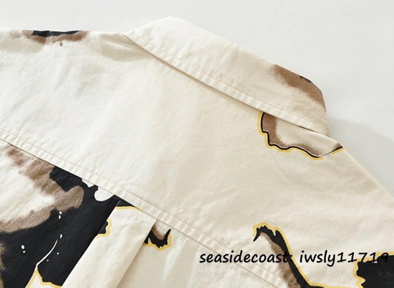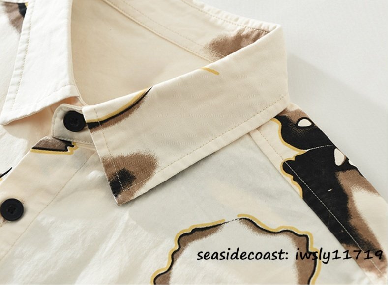 秋新品 メンズシャツ 長袖シャツ 総柄シャツ ワイシャツ 落書き ヴィンテージ お洒落 カジュアル 柔らか コットン 心地良し ブラック XL